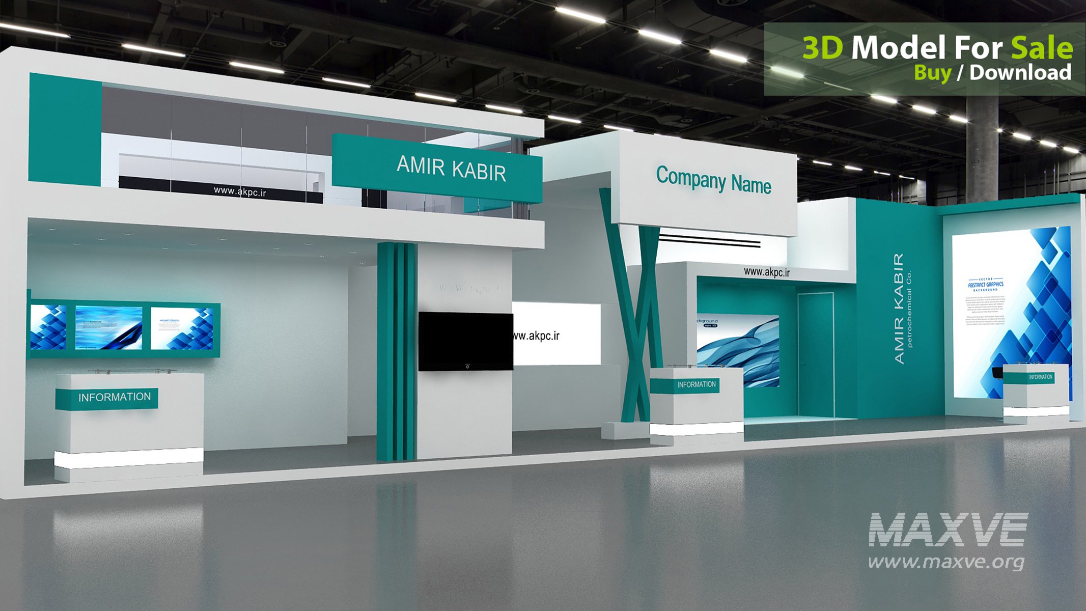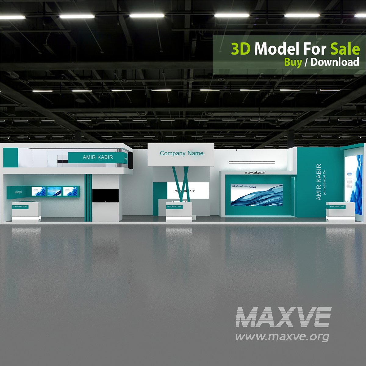 This professional 3D booth model is designed for exhibitions, trade shows, expos, fairs, and event displays.