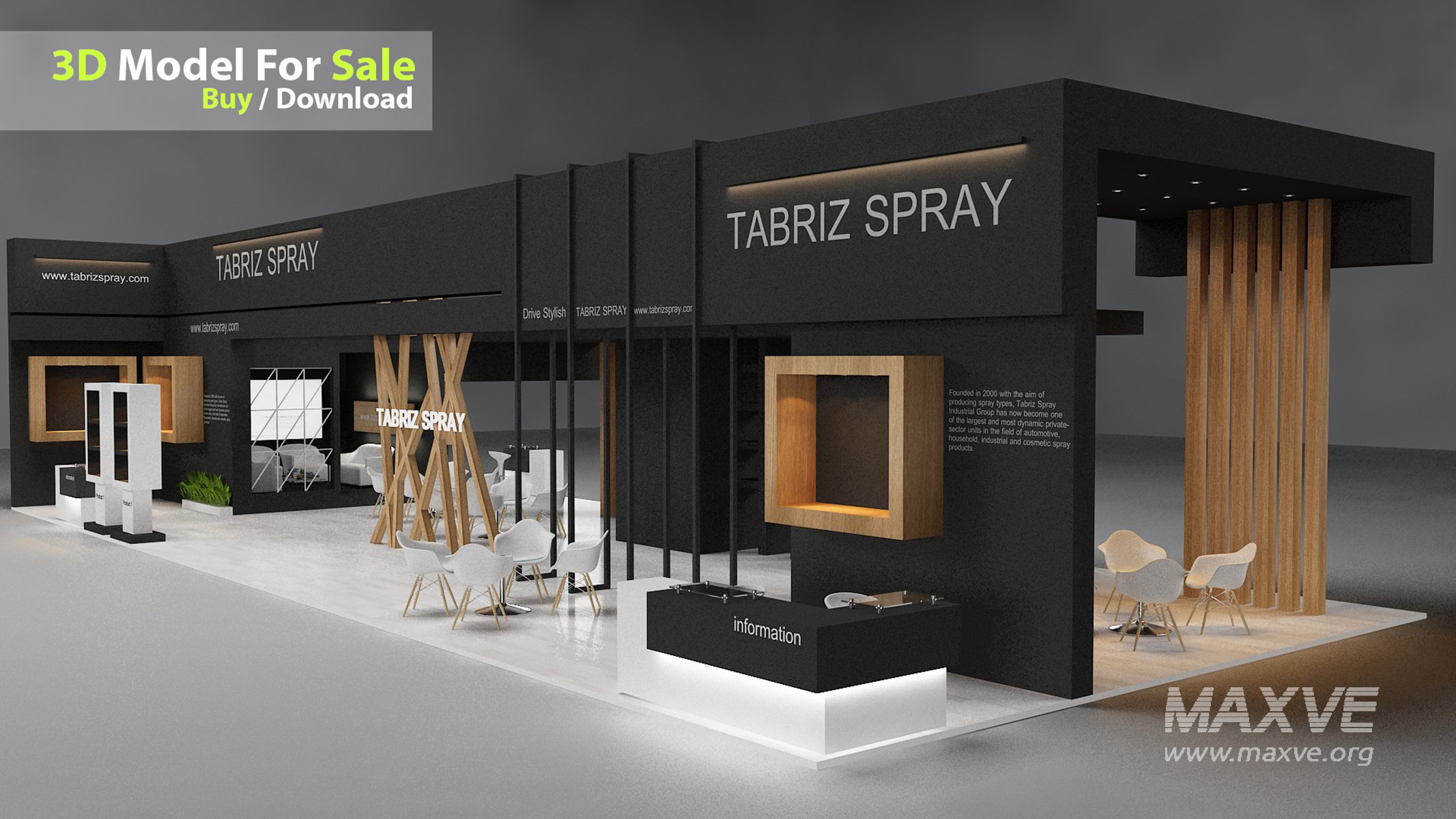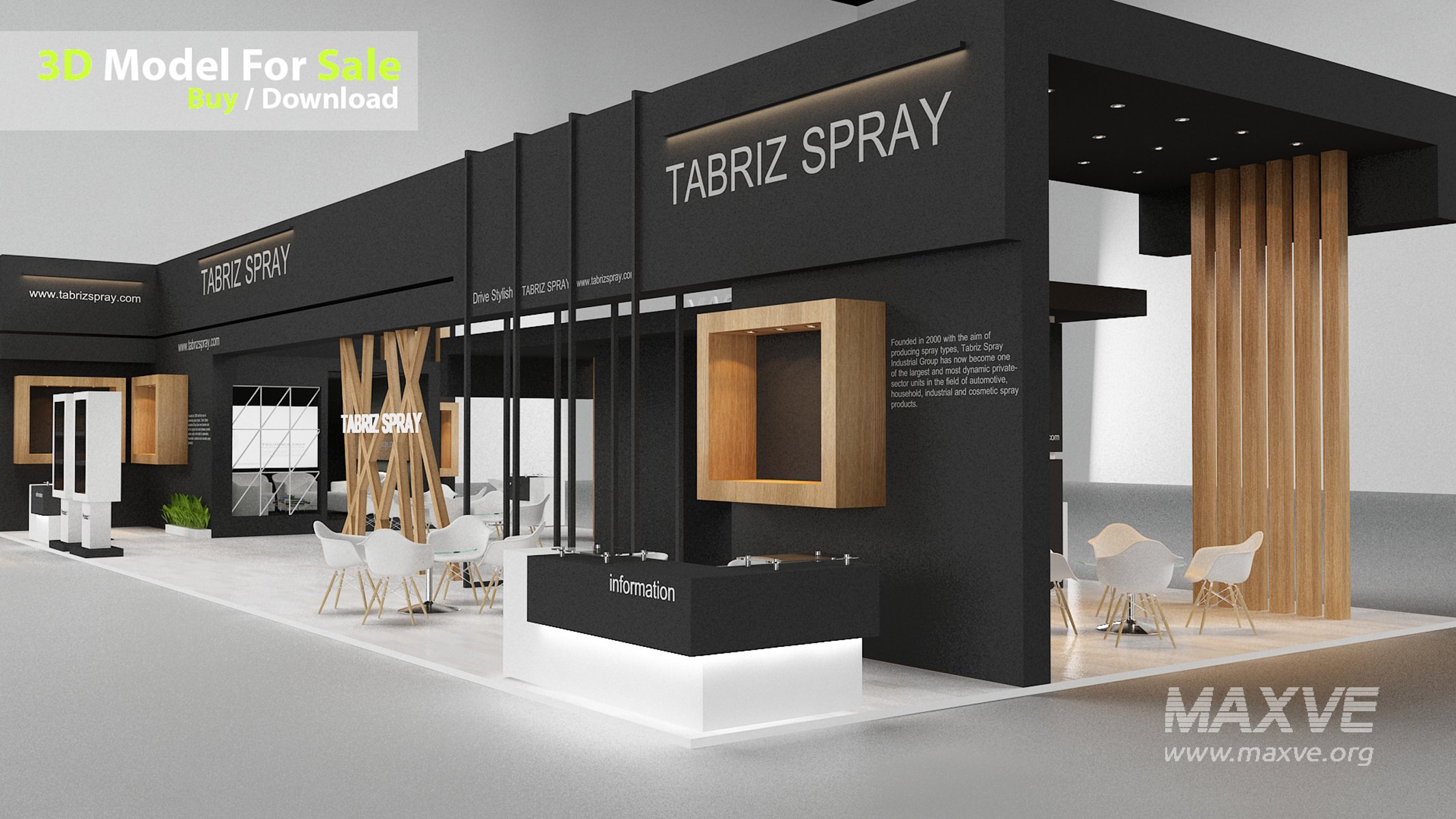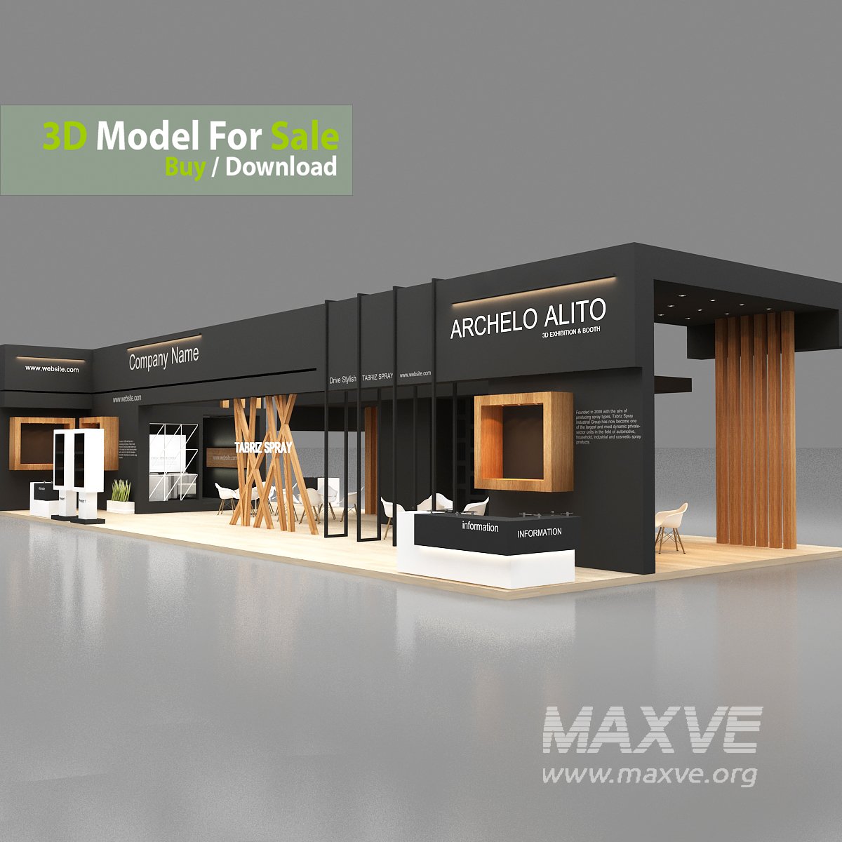 This professional 3D booth model is designed for exhibitions, trade shows, expos, fairs, and event displays.