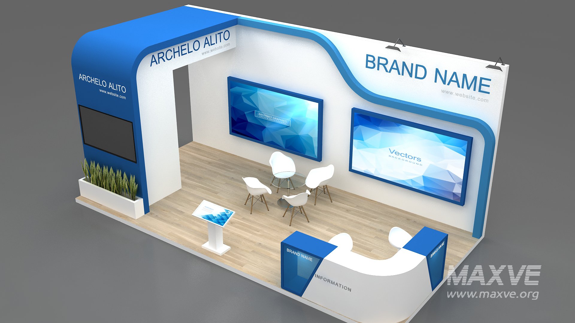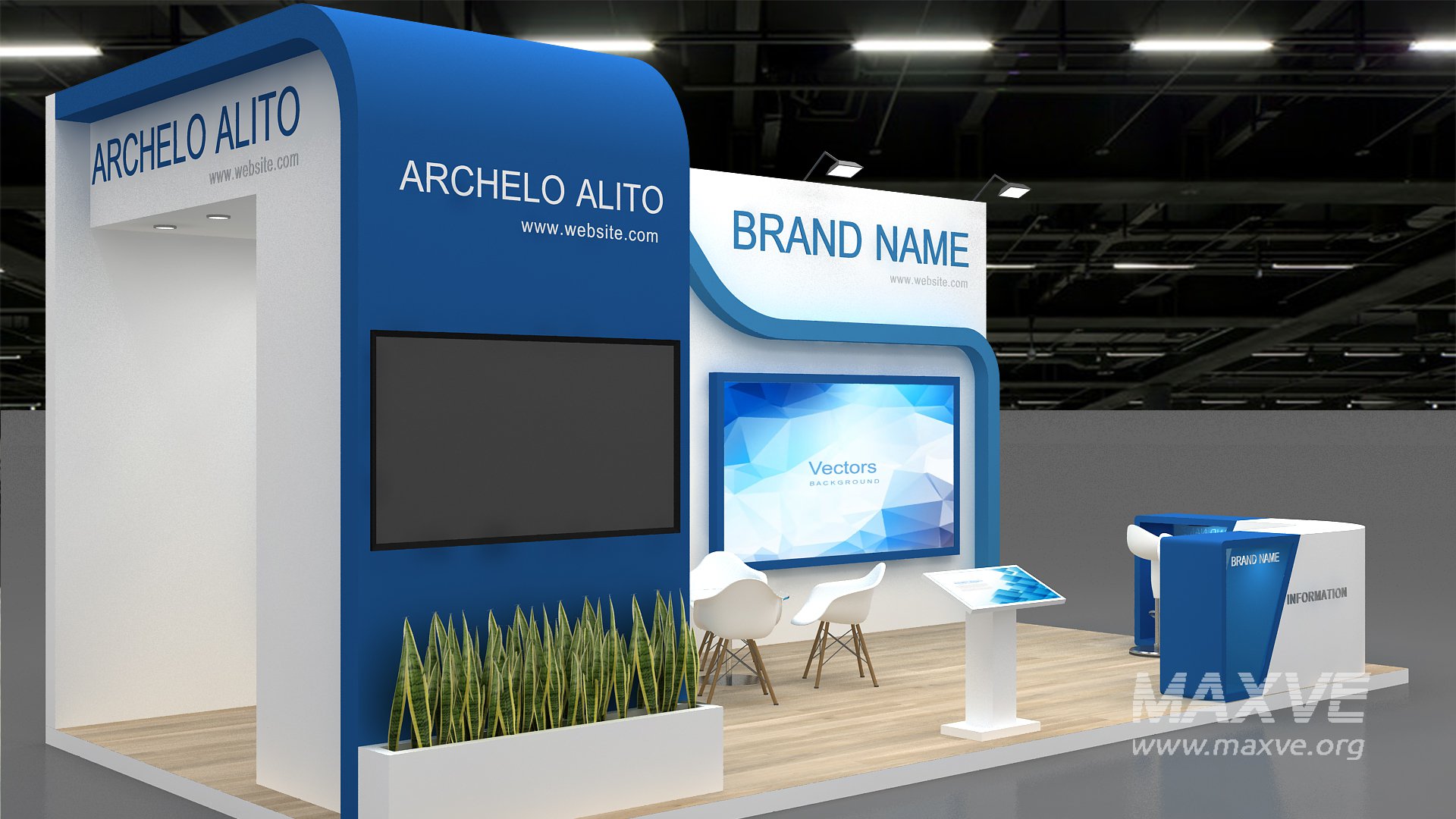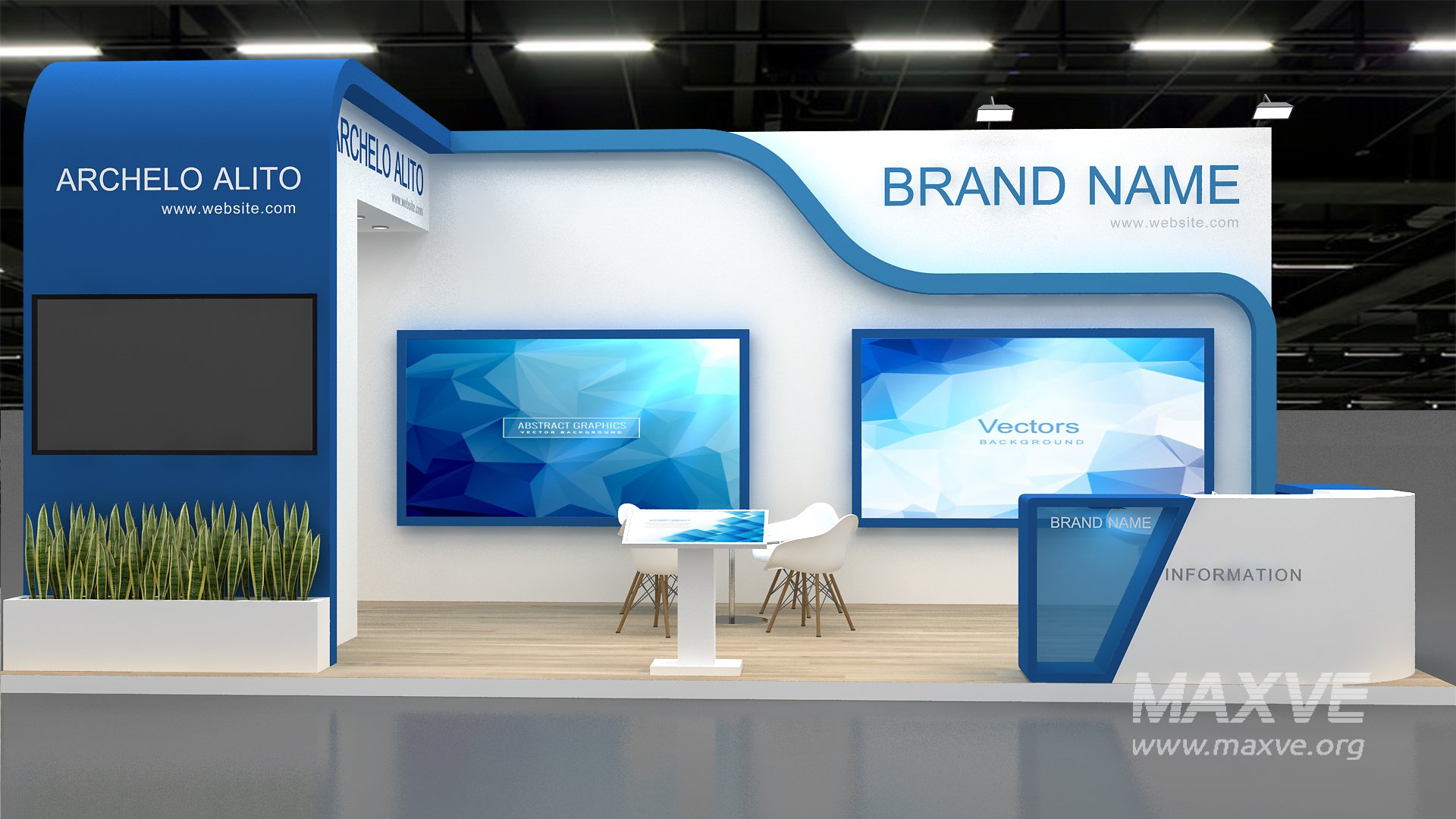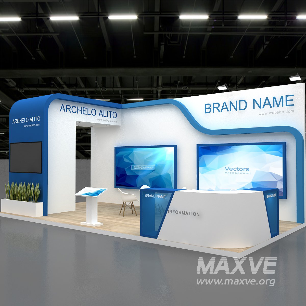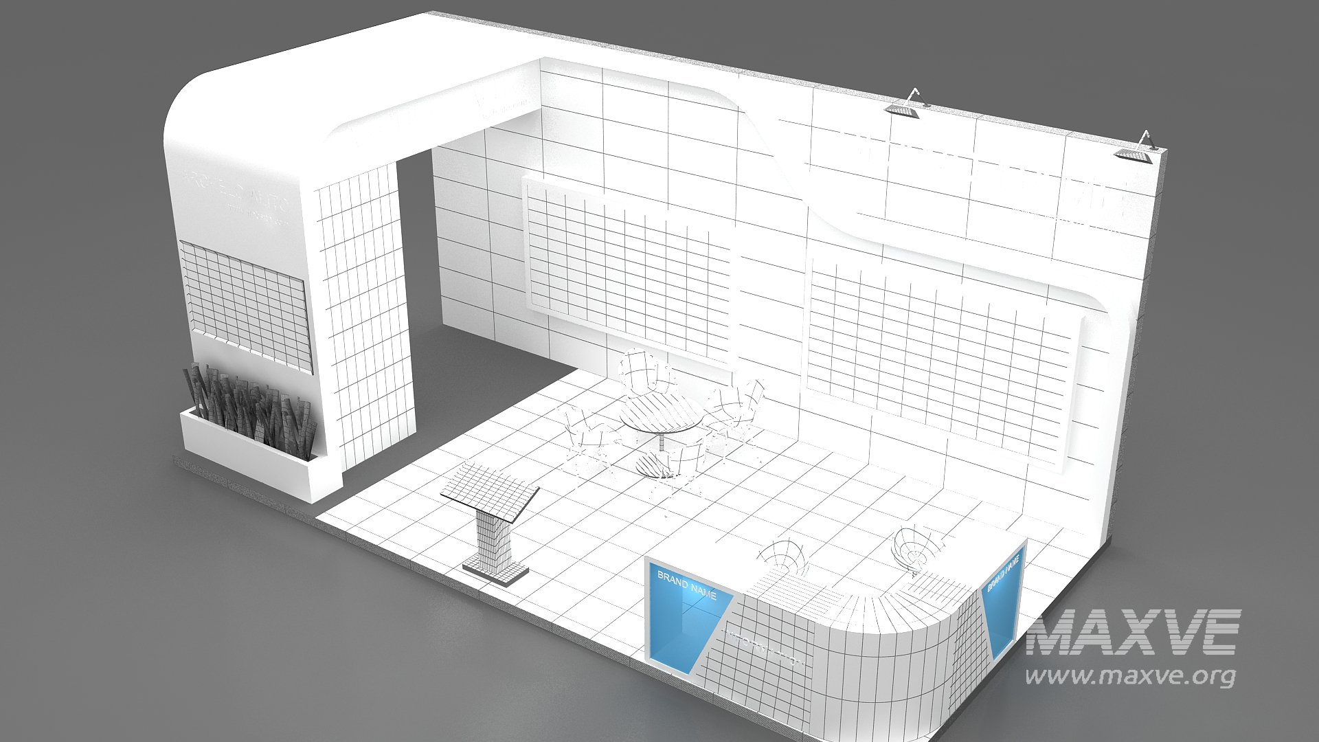 include design all necessary area in Exhibition and Booth Such as Vip and Storage and Counters and also Stand for productsFormat: 3DsMax (all version from 2016)