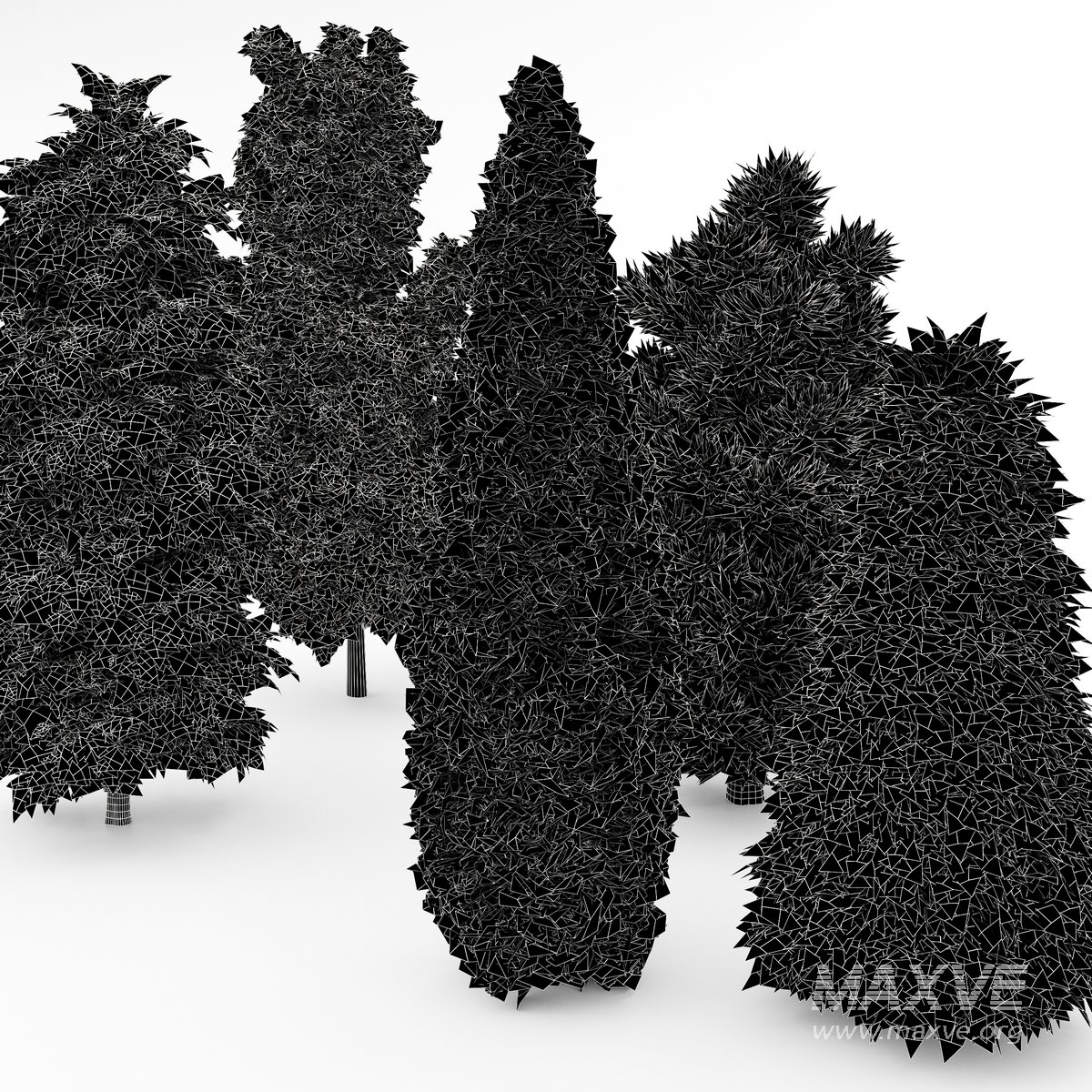 5 different 3D models of each tree in each scene