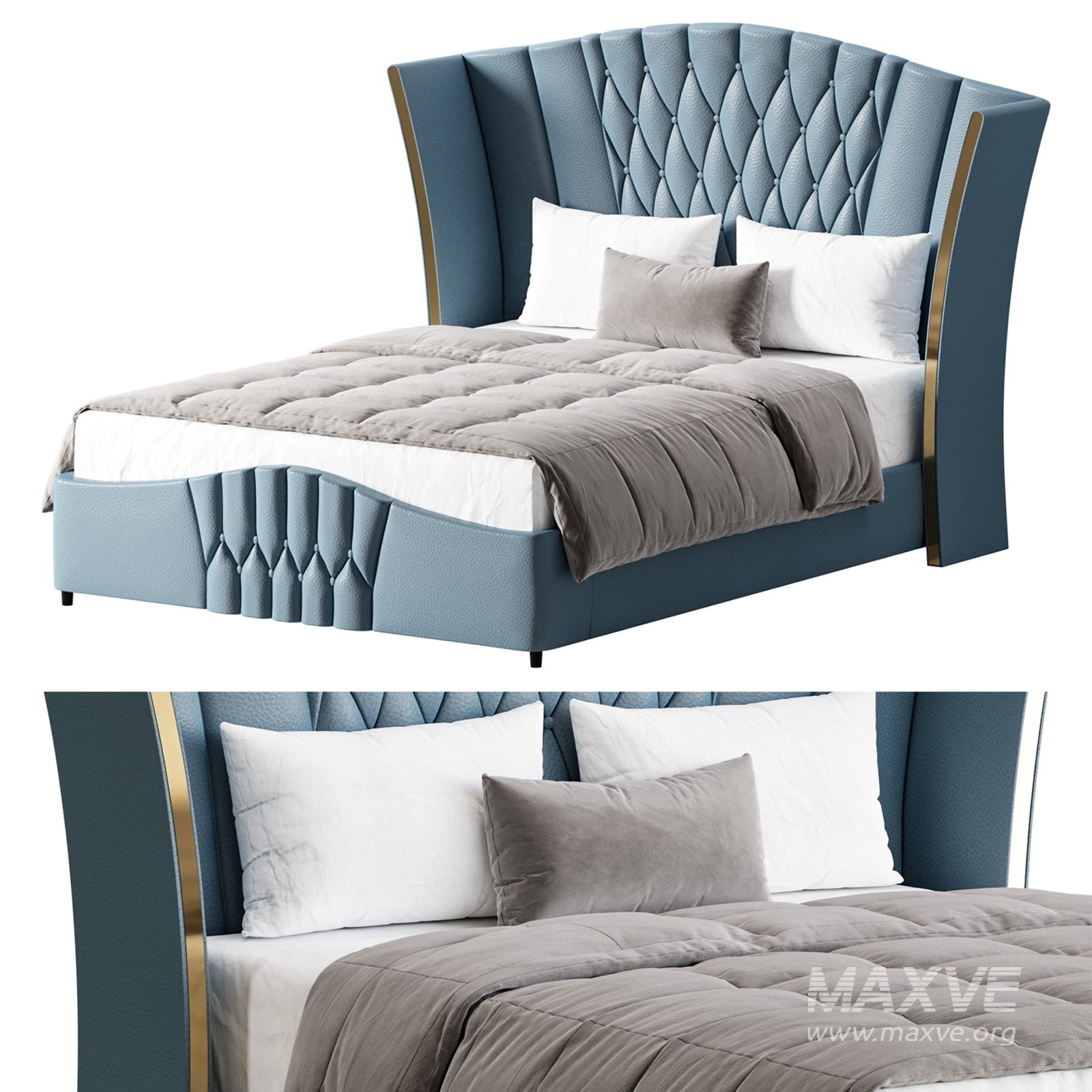 Tags: upholstered bed, modern bed, luxury bedroom, camerone style, winged headboard, tufted headboard, fabric bed, contemporary furniture, bedroom furniture, realistic bedding, interior visualization, architectural render, 3ds max model, fbx export, high poly model, premium furniture, soft upholstery, modern interior, bed design, furniture asset, detailed model