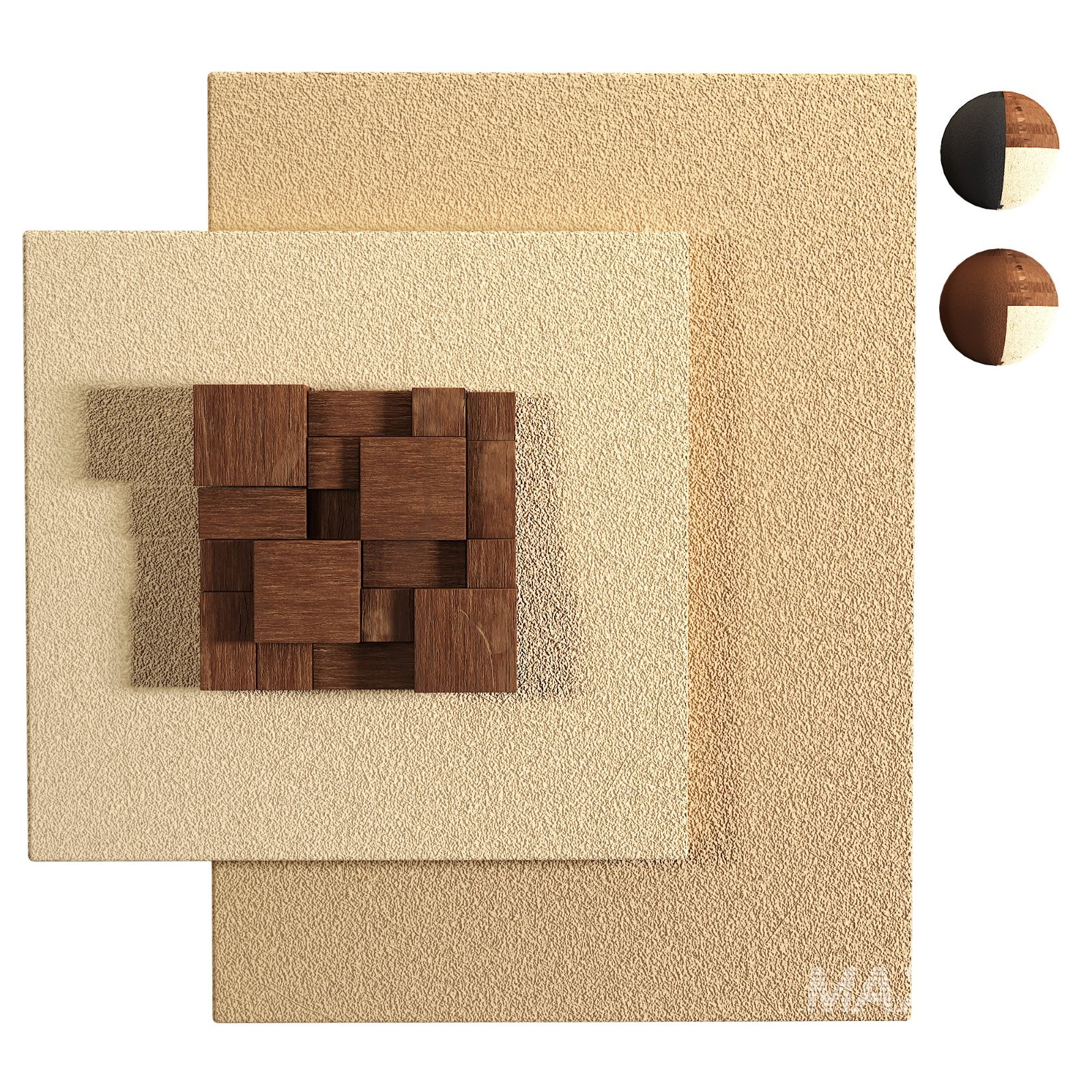 This 3D wall panel model features a modern geometric design with layered square shapes, combining textured stucco surfaces in beige and brown tones with a central wooden cube inlay mosaic. Its minimalist yet artistic composition makes it perfect for interior visualization, architectural rendering, and decorative wall design projects. Render-ready for 3ds Max, V-Ray this model brings a touch of luxury and warmth to any virtual space.