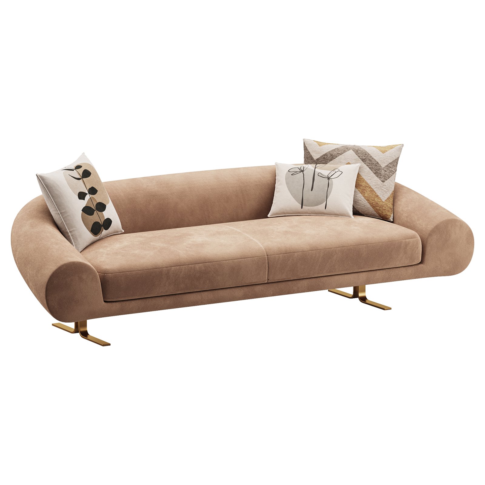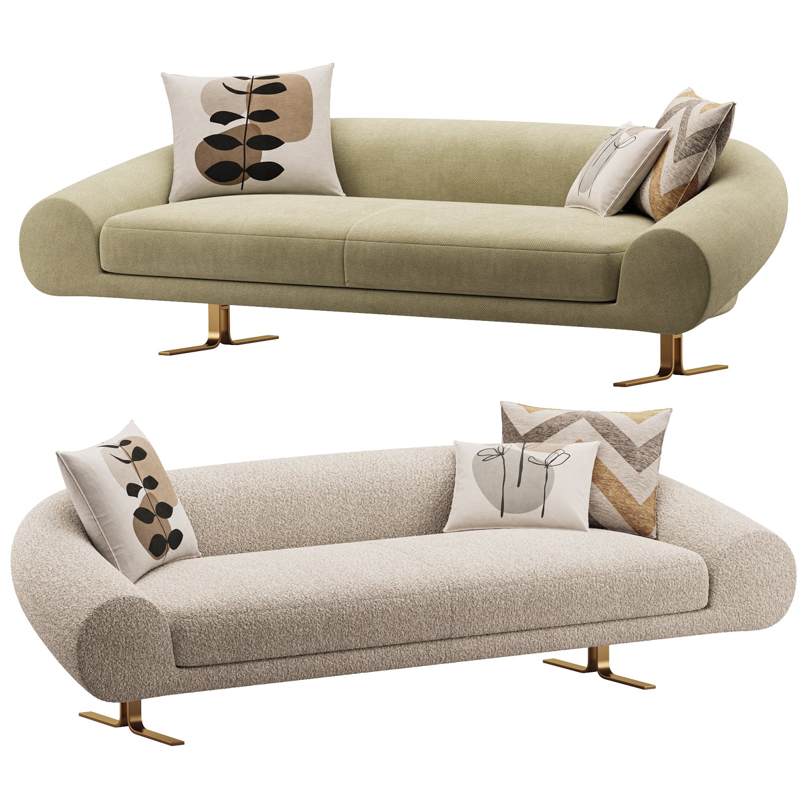 Tags: sofa, 3D model, modern couch, curved sofa, airstrike lineare, bouclé fabric, decorative pillows, designer furniture, minimal style, corona renderer, interior visualization, 3ds max, FBX export, gold legs, neutral tones, elegant living room, lounge furniture, Italian design, comfortable sofa, architectural asset, home decor