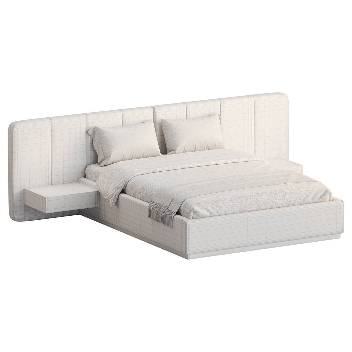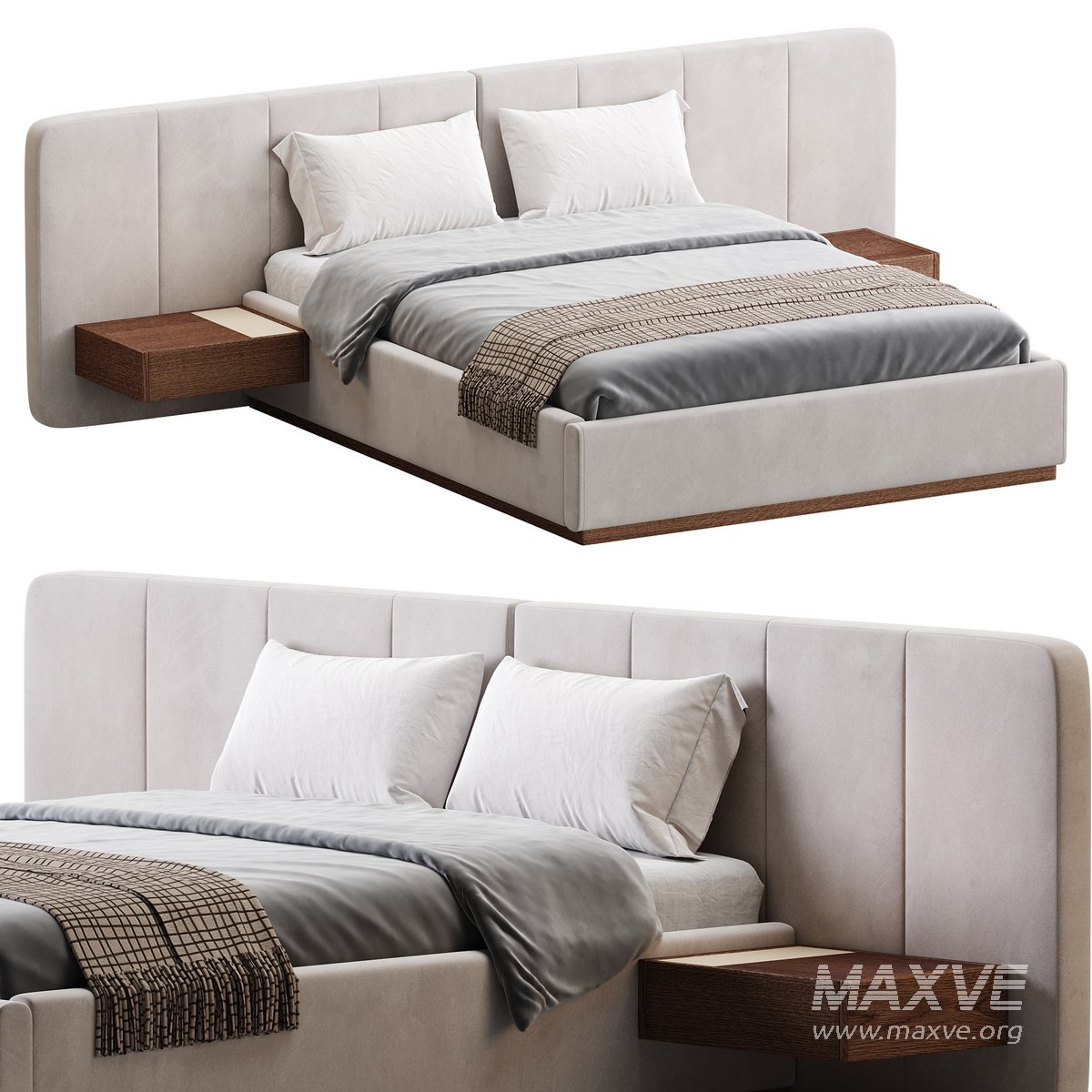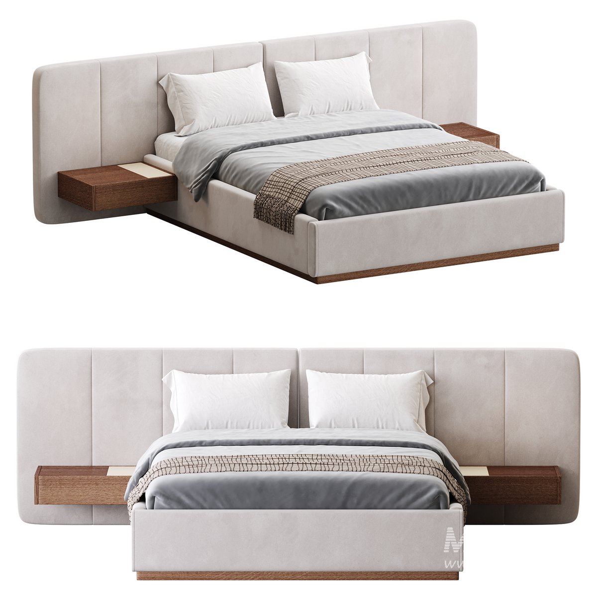 American Queen Size Bed Offered in Velvet with Floating Nightstands