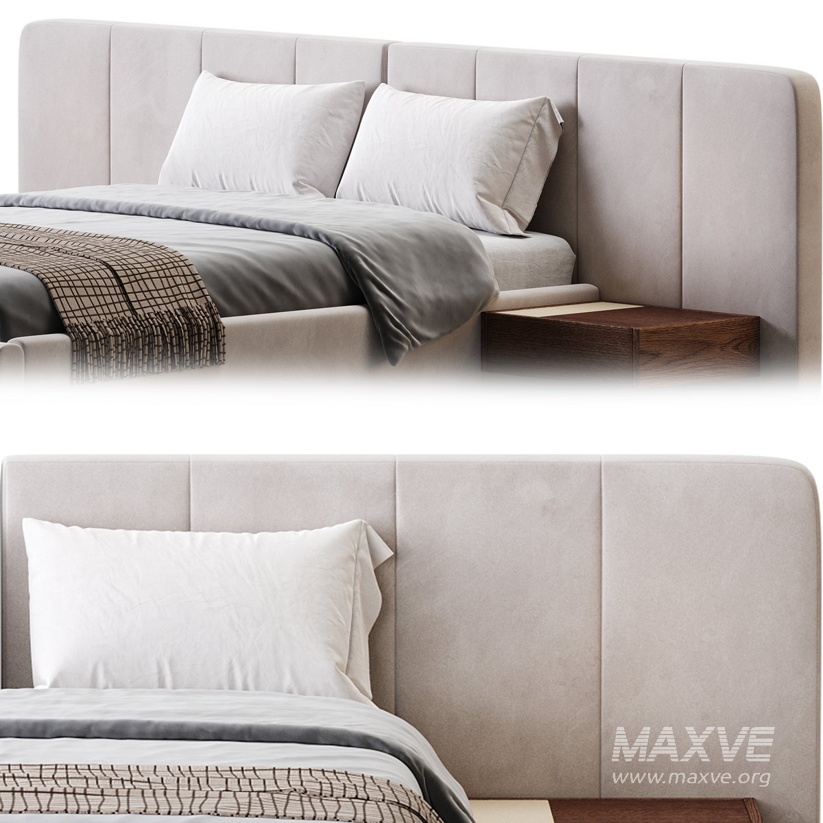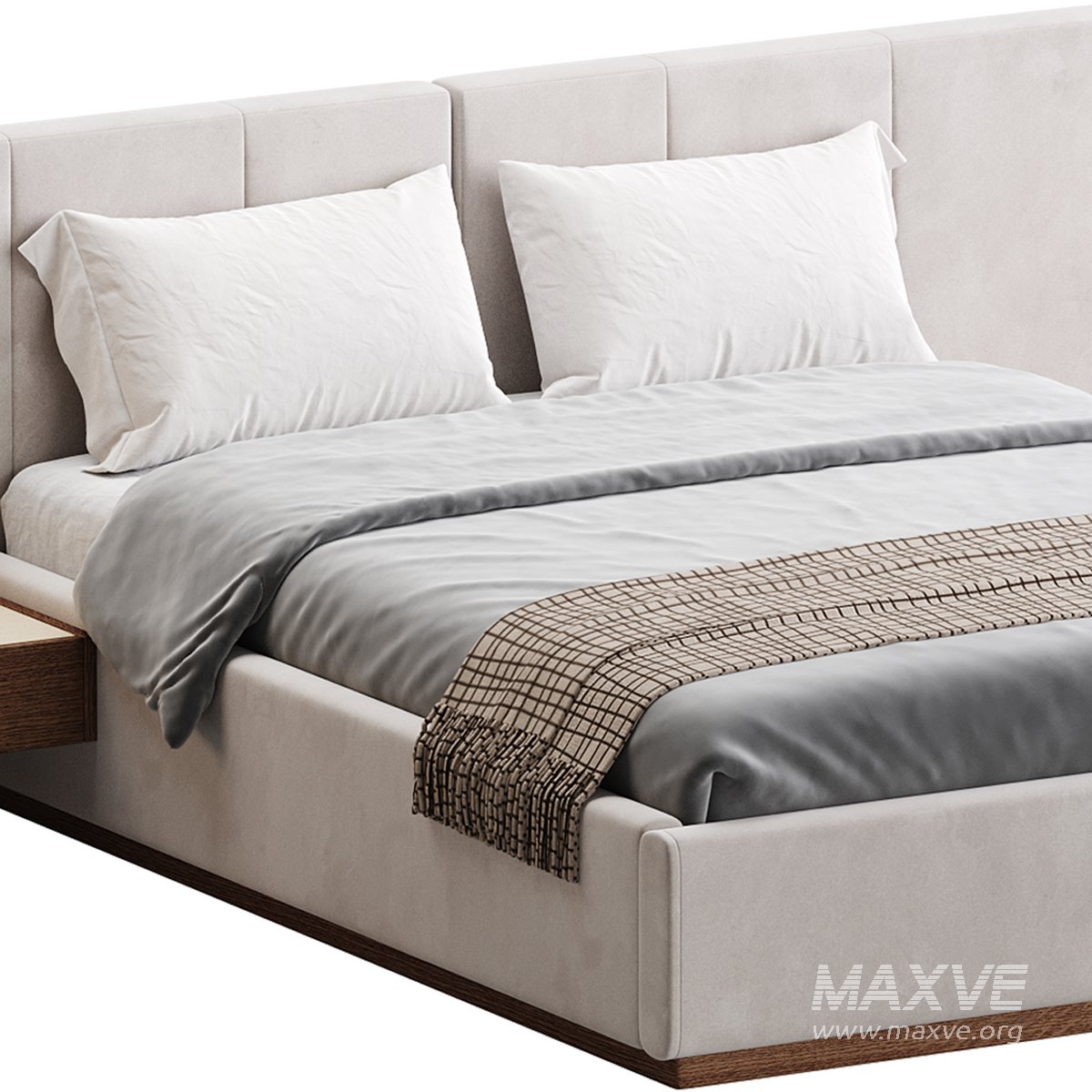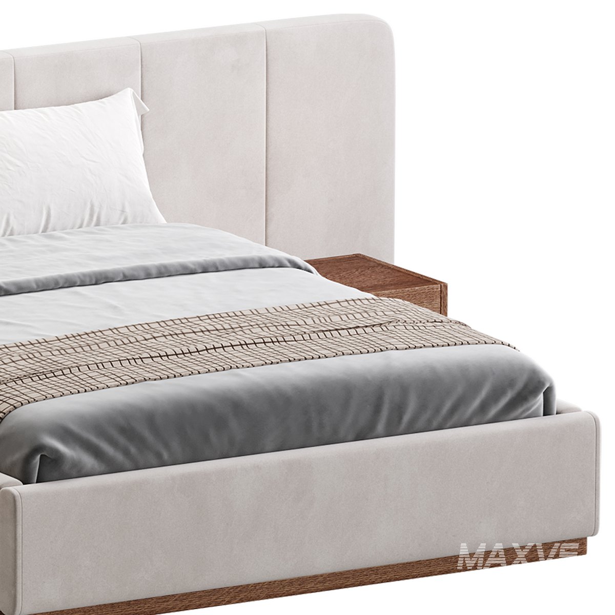 American Queen Size Bed Offered in Velvet with Floating Nightstands