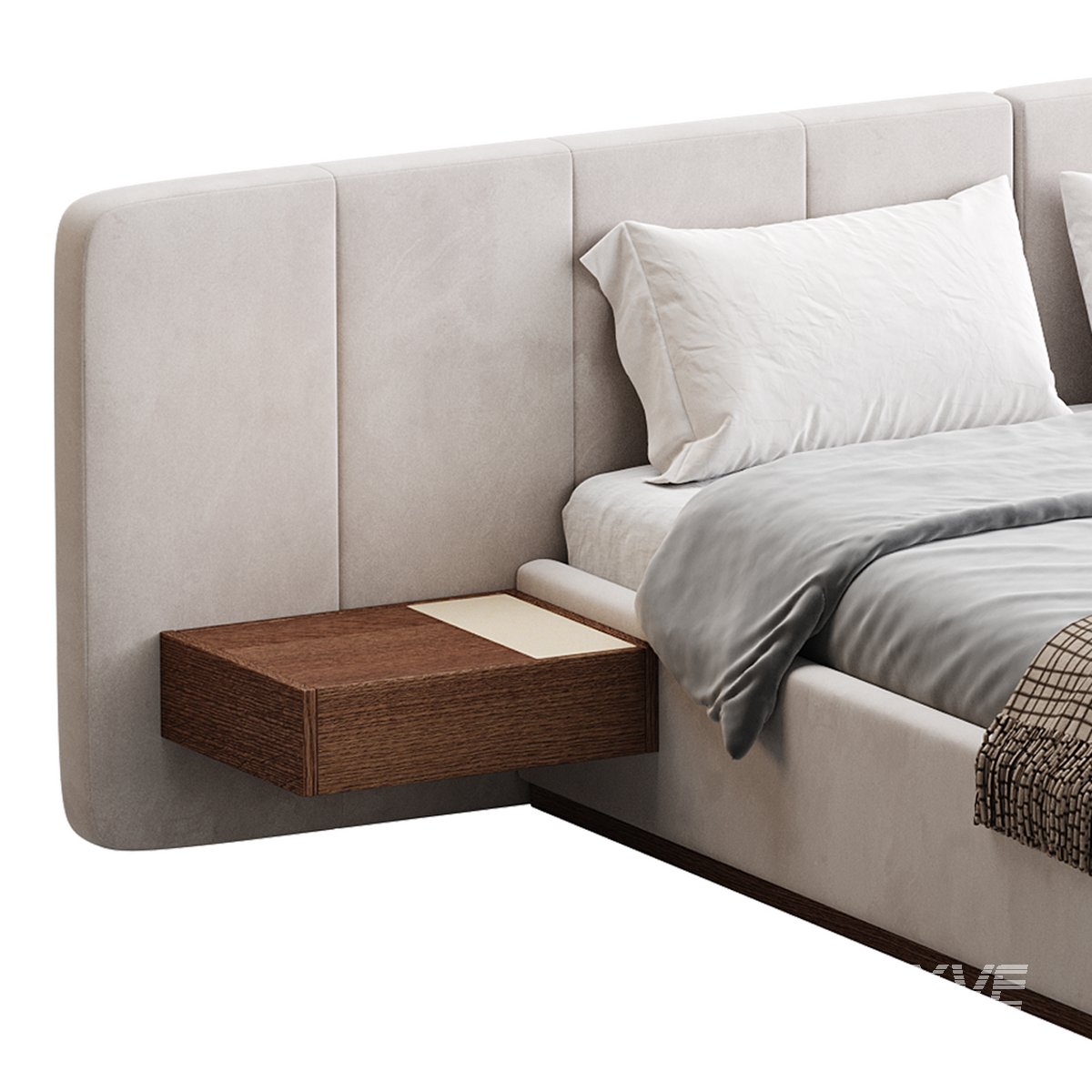 Name: American Queen Size Bed Offered in Velvet with Floating Nightstands