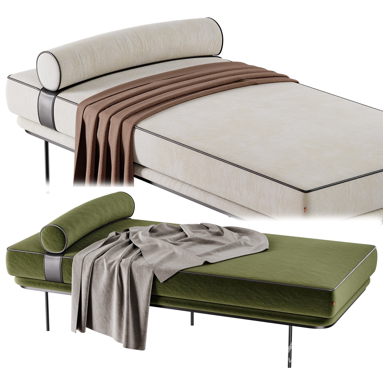 Tags: Antoine daybed, modern daybed, upholstered bed, contemporary furniture, soft seating, designer furniture, 3D model, Corona Renderer, 3ds Max model, metal frame bed, luxury daybed, minimal furniture, interior design, product visualization, realistic 3D furniture, bedroom decor, living room furniture, soft fabric model, modern interior, home design asset, visualization model