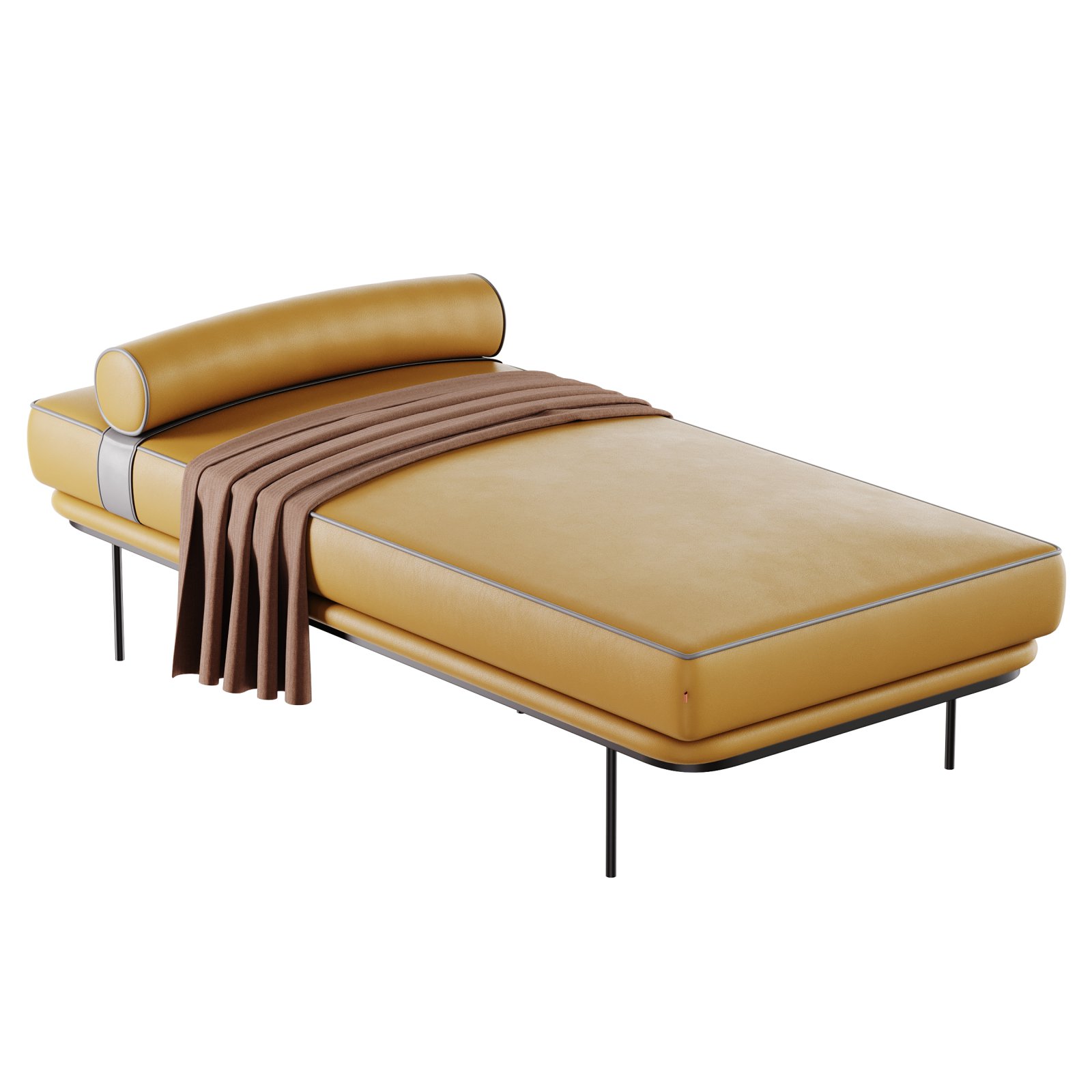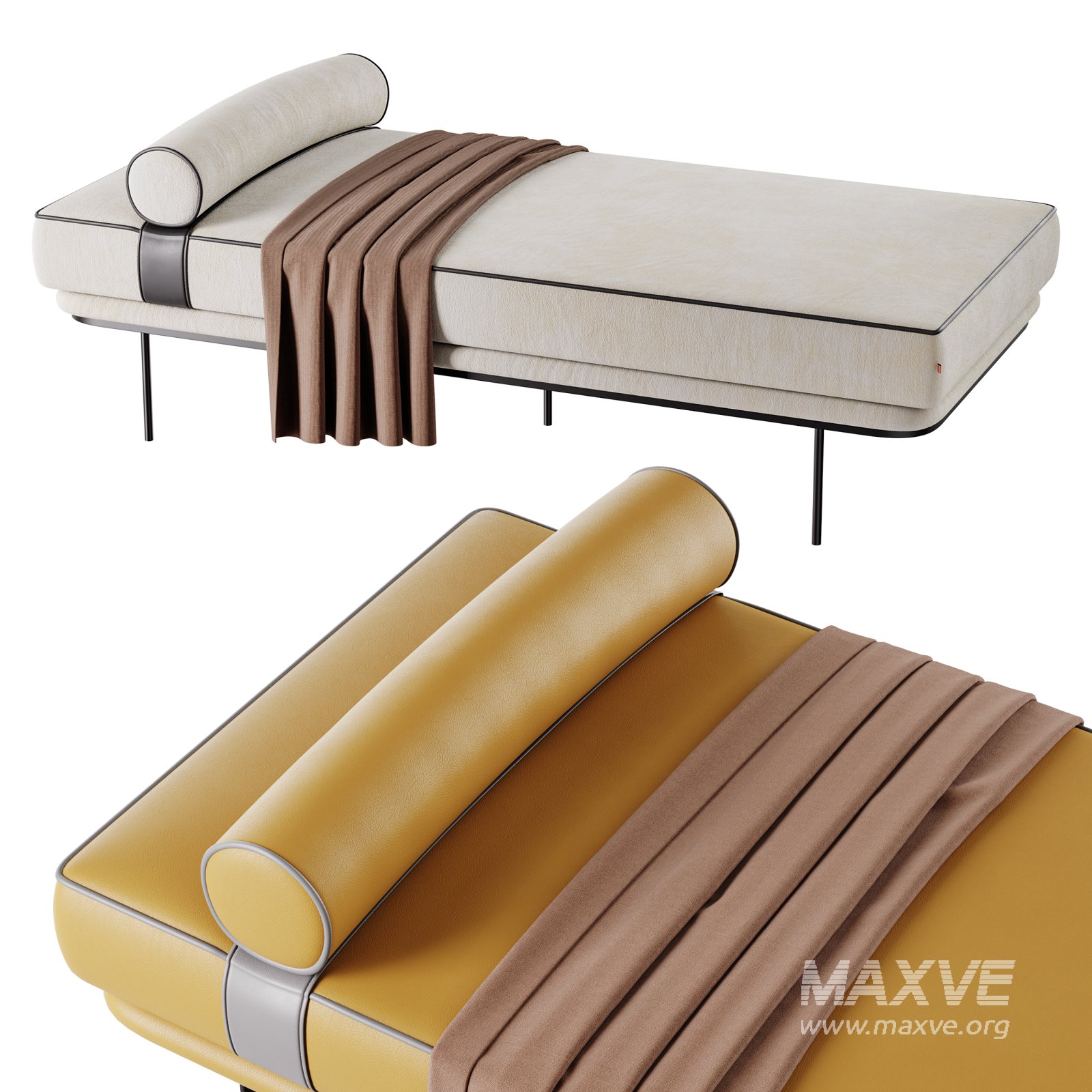 Description: The Antoine Daybed is a refined and luxurious furniture piece designed with modern minimalism and comfort in mind. Featuring a sleek metal base, smooth upholstered cushion, and a matching cylindrical bolster, it offers both elegance and functionality. The realistic fabric and leather materials are meticulously detailed with CoronaLayeredMtl and CoronaLegacyMtl for superior visual fidelity. A softly draped blanket adds a natural touch, making the model ideal for interior renders, lifestyle scenes, or product visualizations.