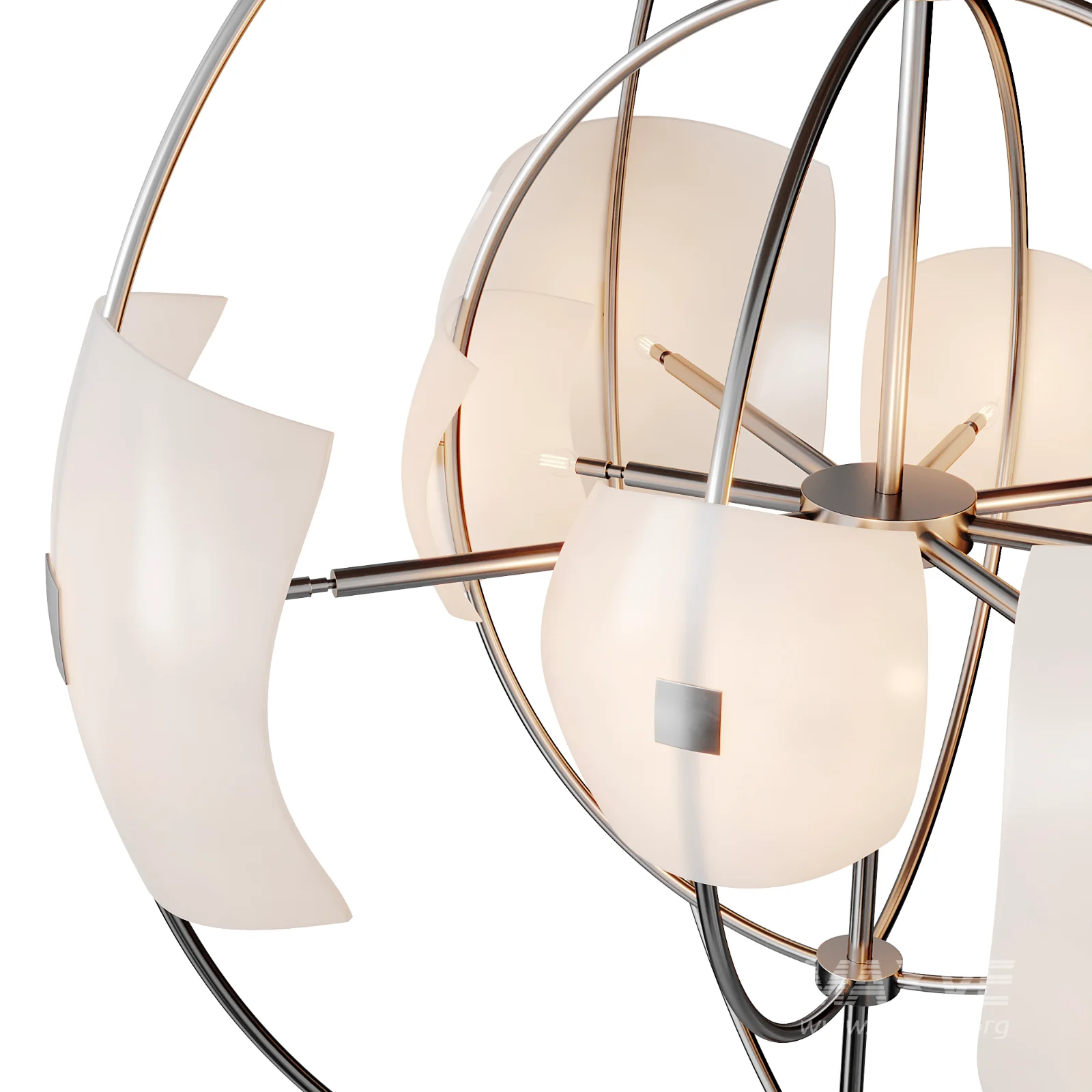 High quality 3D model of the Astra Orb Large Pendant Light featuring a striking sculptural design with intersecting metal rings and softly diffused glass shades. The balanced geometric composition creates a bold yet elegant lighting fixture suitable for modern and contemporary interiors. Ideal for interior visualization, architectural renders, and professional lighting design projects. The model is accurately scaled to real-world dimensions with clean geometry and optimized topology, making it ready for production use. Fully compatible with Corona Renderer and V-Ray, perfect for luxury residential, hotel, lobby, and statement interior spaces.