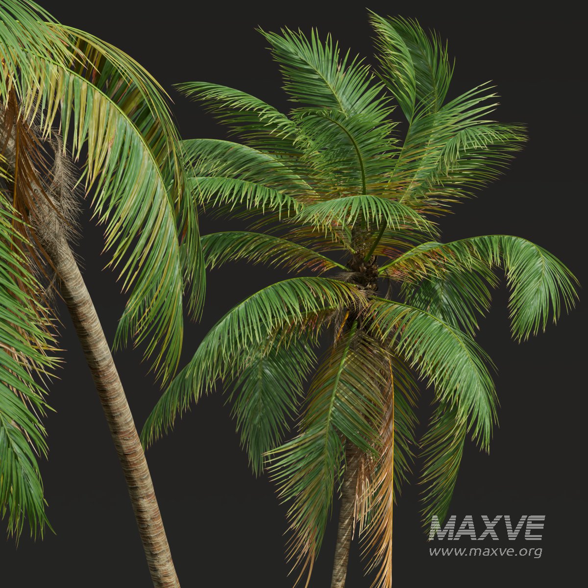 AV Cocos Nucifera Windy and Roystonea Regia palm trees