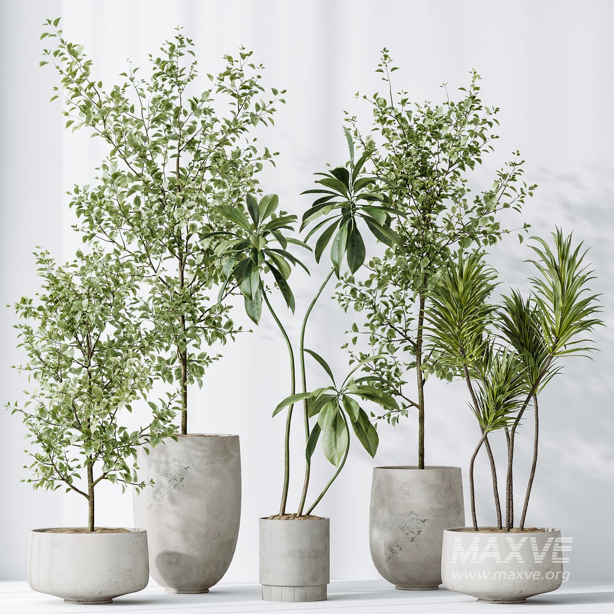 AV Indoor plants set 153 Beech Olea Europaea Olive Eucalyptu and Aloifolia Rostrata Palm and Ficus Cyathistipula African Fig