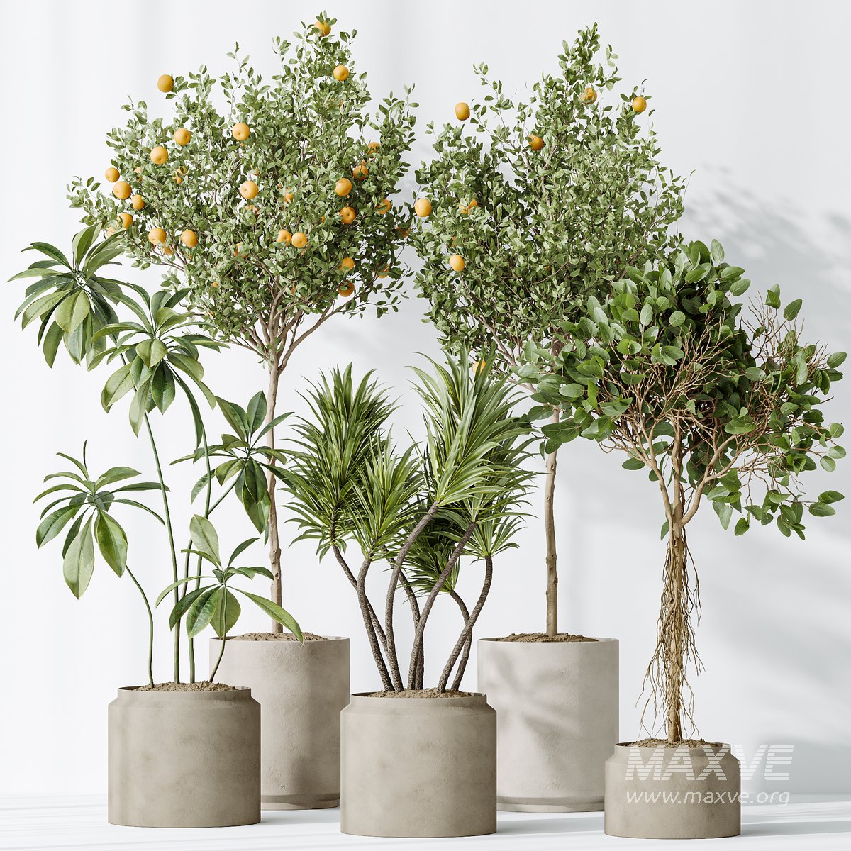 AV Indoor plants set 162 Mandarin Citrus Fruit Orange and Ficus Cyathistipula and Benjamina African Fig and Yucca Aloifolia Rostrata Palm