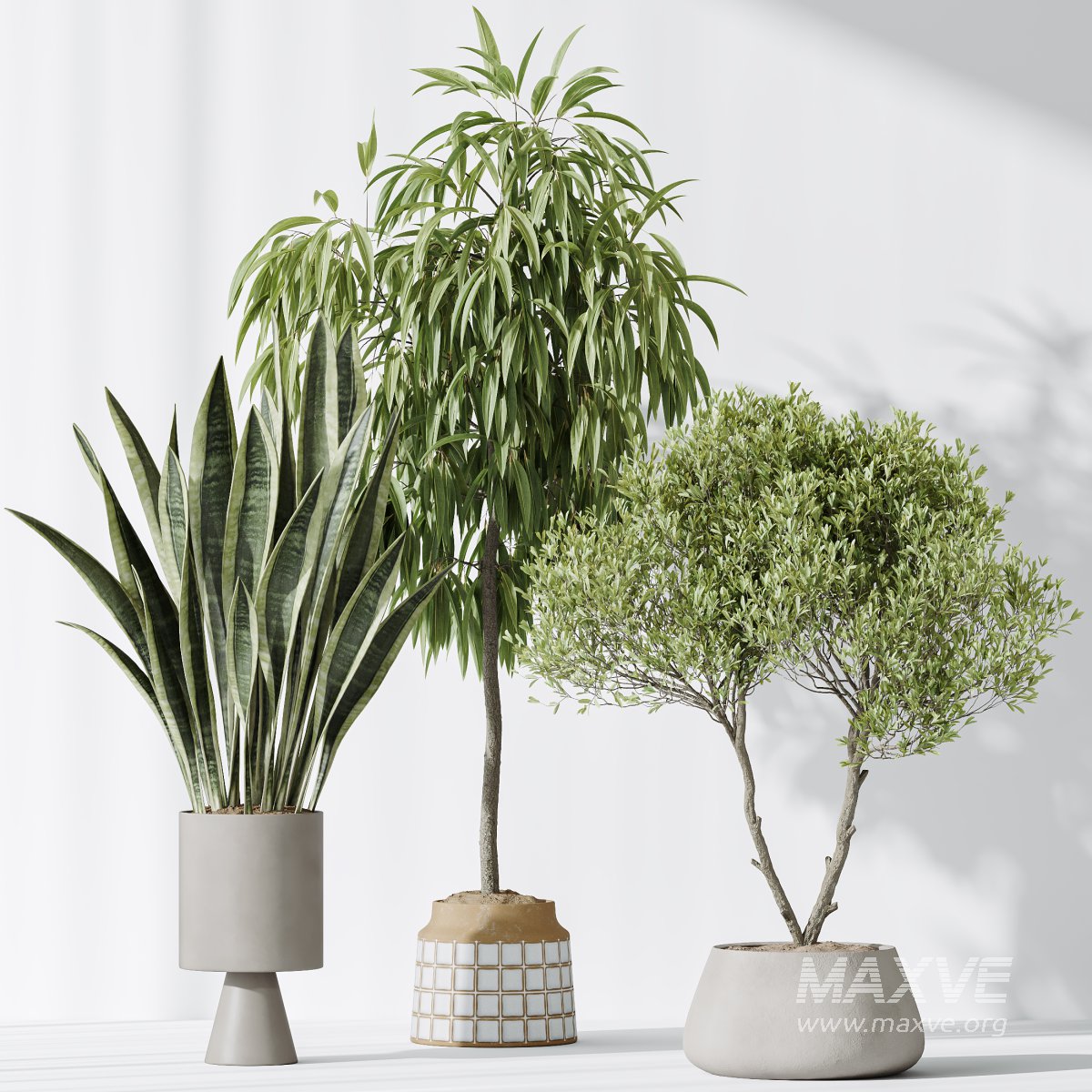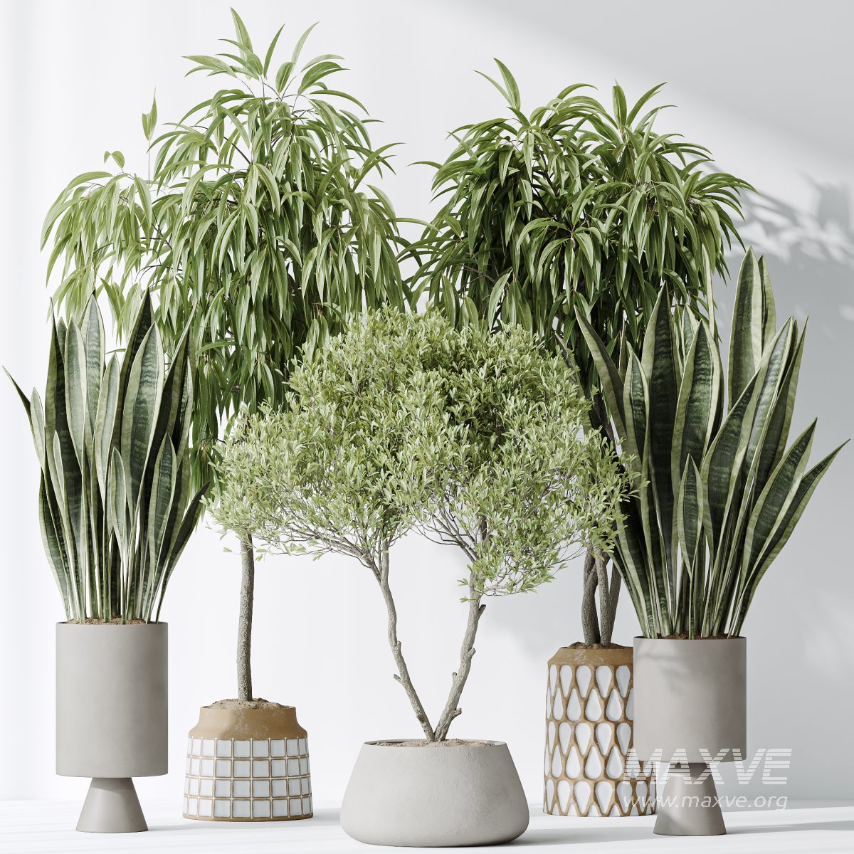 AV Indoor plants set 174 Ficus Binnendijkii and Mission Leccino Arbequina Olive and Snake Green Sansevieria