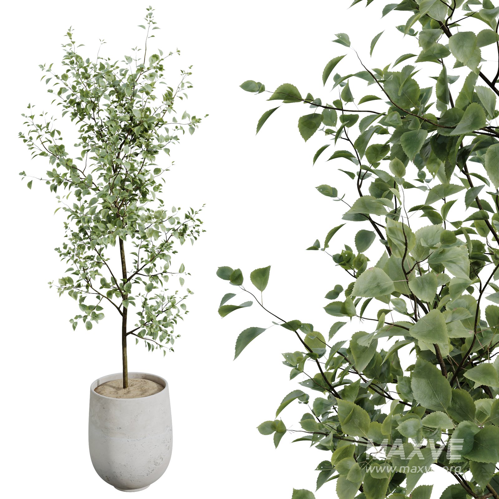 This elegant indoor set weaves together a rich narrative of texture, form, and botanical heritage. Anchored by the timeless beauty of the European Olive (Olea Europaea) and the delicate lightness of Beech and Eucalyptus foliage, the collection captures the soul of Mediterranean minimalism. The sculptural trunk of Japandi Ficus Dracaena Marginata, the lush curves of Ficus Robusta, and the spiky character of Yucca Aloifolia introduce a rhythmic variation that elevates architectural scenes. Each plant is housed in a distinctive hand-crafted pot—ranging from raw concrete to sculpted ceramic—designed to accentuate the organic forms and complement modern interior design with sophistication and calm.