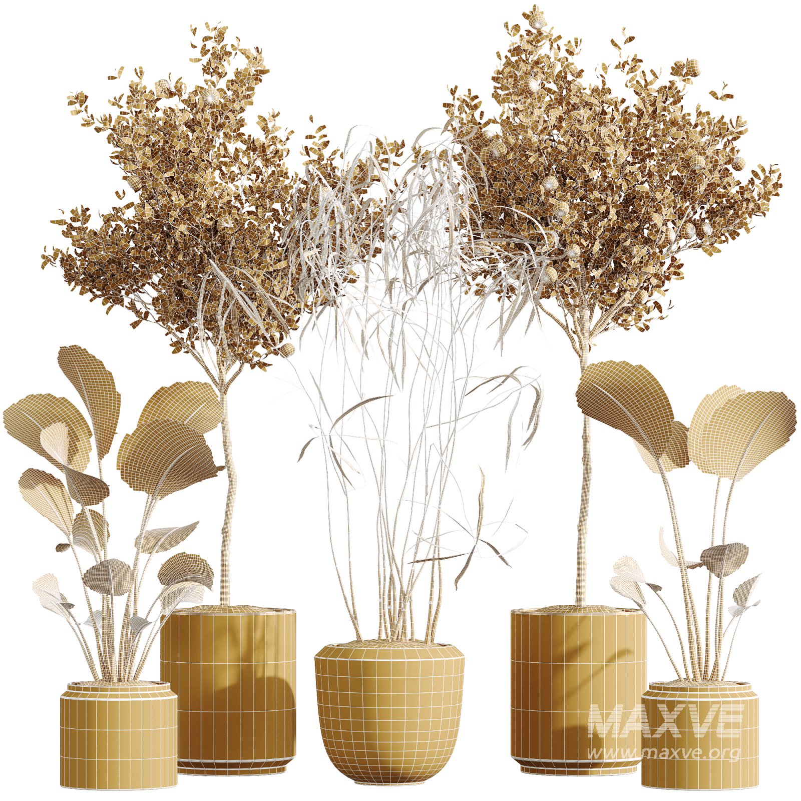 AV Indoor Plants Set 273 Banana Strelitzia Nicolai and Citrus Fruit Orange Tree and Japandi Ficus Dracaena Marginata
