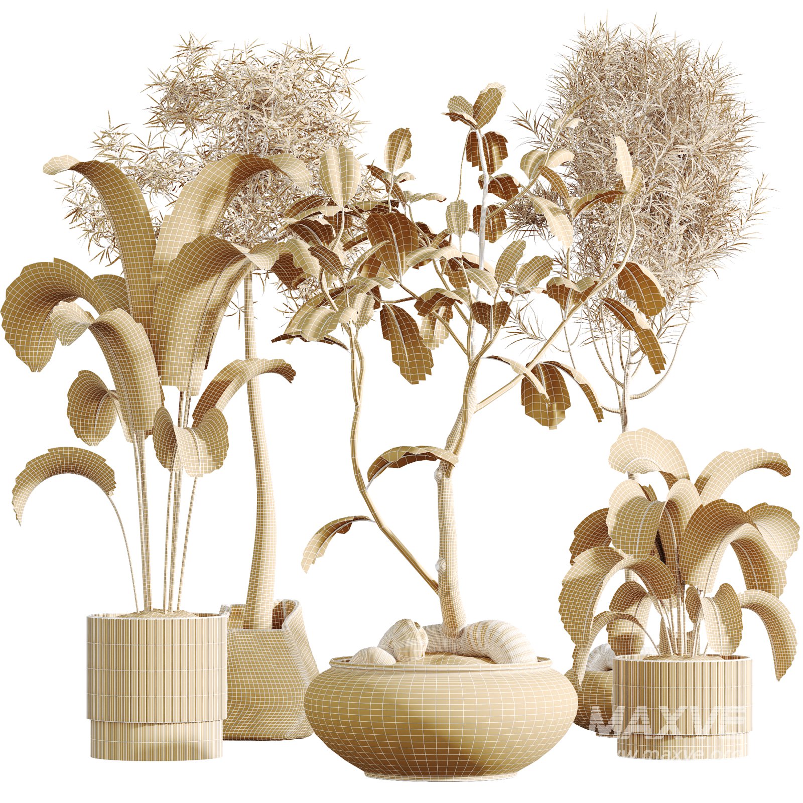 This premium 3D plant set combines the tropical elegance of Banana Strelitzia Nicolai with the sculptural minimalism of Japandi Ficus Dracaena Marginata. The models capture authentic botanical forms with lush foliage, graceful trunks, and balanced proportions—perfect for refined interiors, Japandi-style projects, and modern architectural visualizations. Each piece is presented in artisanal-style concrete planters, enhancing their clean and contemporary aesthetic.