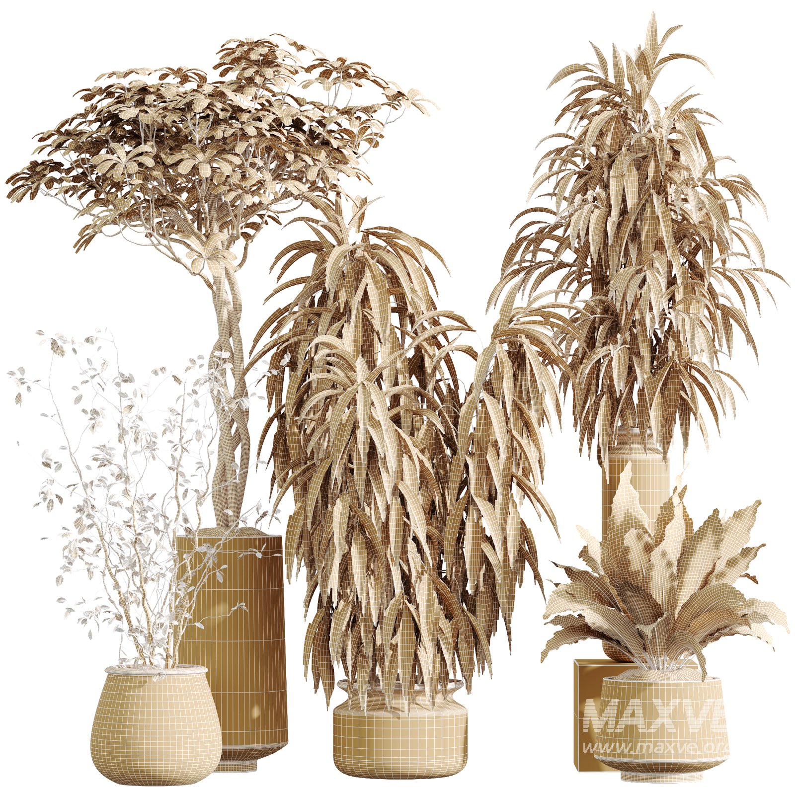 AV Indoor Plants Set 393 unites four elegant species — Spathiphyllum Wallisii, Ficus Binnendijkii, Schefflera Arboricola, and Aspidistra Elatior — in a refined collection designed for luxurious interiors and realistic architectural visualization. Each plant has been crafted with botanical precision and artistic harmony, combining tropical character with minimalist design.