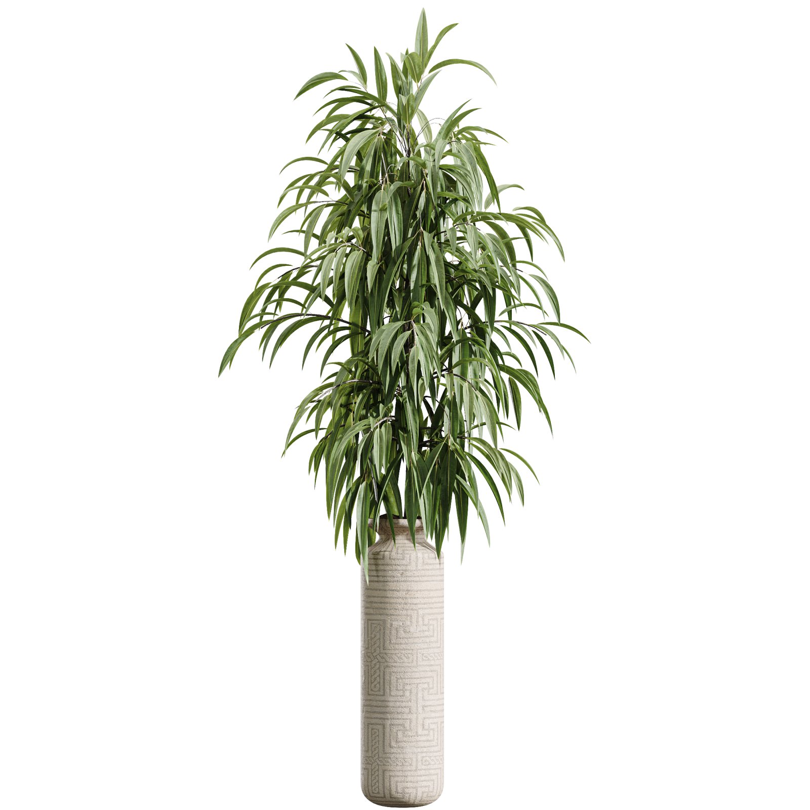 Ficus Binnendijkii, from Southeast Asia, introduces slender cascading foliage and tall graceful form, bringing a sense of depth and tropical calmness.