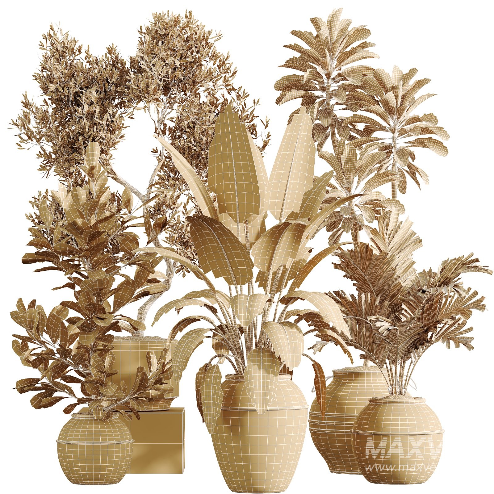Add lush greenery and refined architectural presence to your interior visualizations with this premium indoor plant collection featuring Cyara Areca Palm, Euphorbia drupifera, Olive Tree, Ficus elastica, and Ficus macrocarpa. Each plant is carefully modeled to reflect realistic foliage density, natural branching, and authentic proportions, making this set ideal for professional interior archviz projects.
