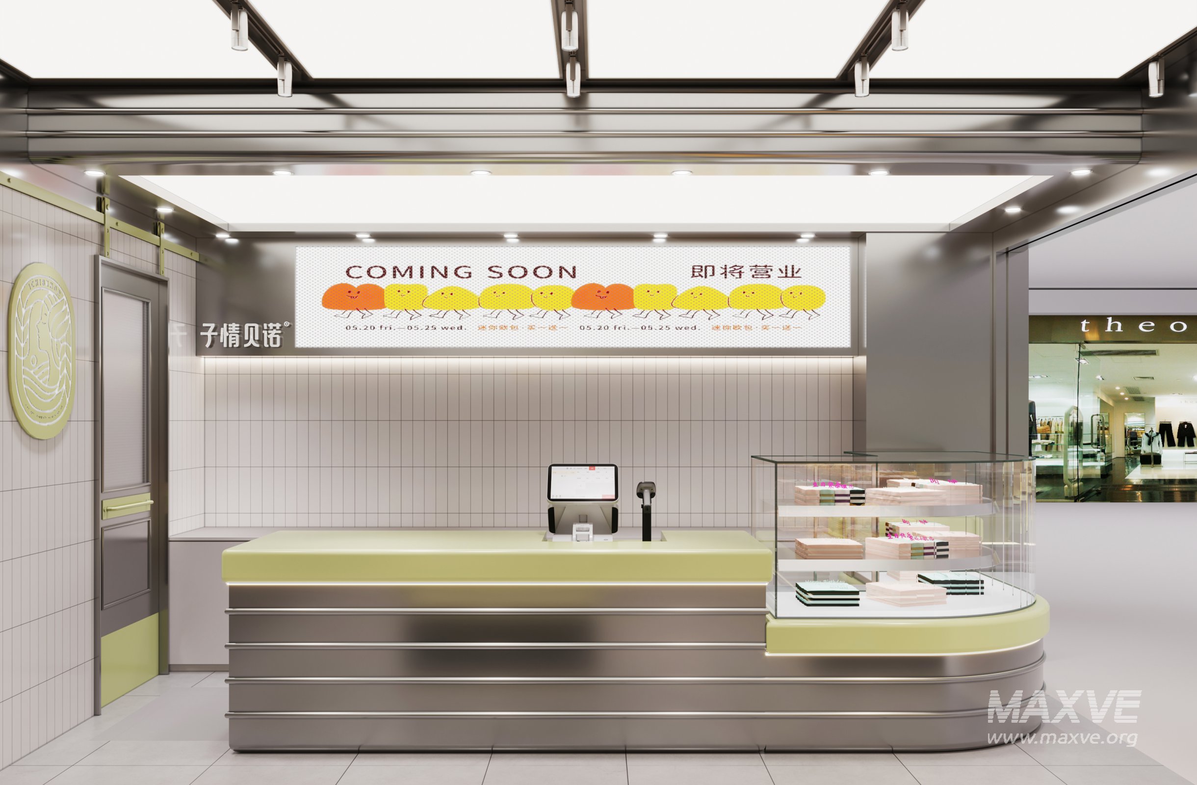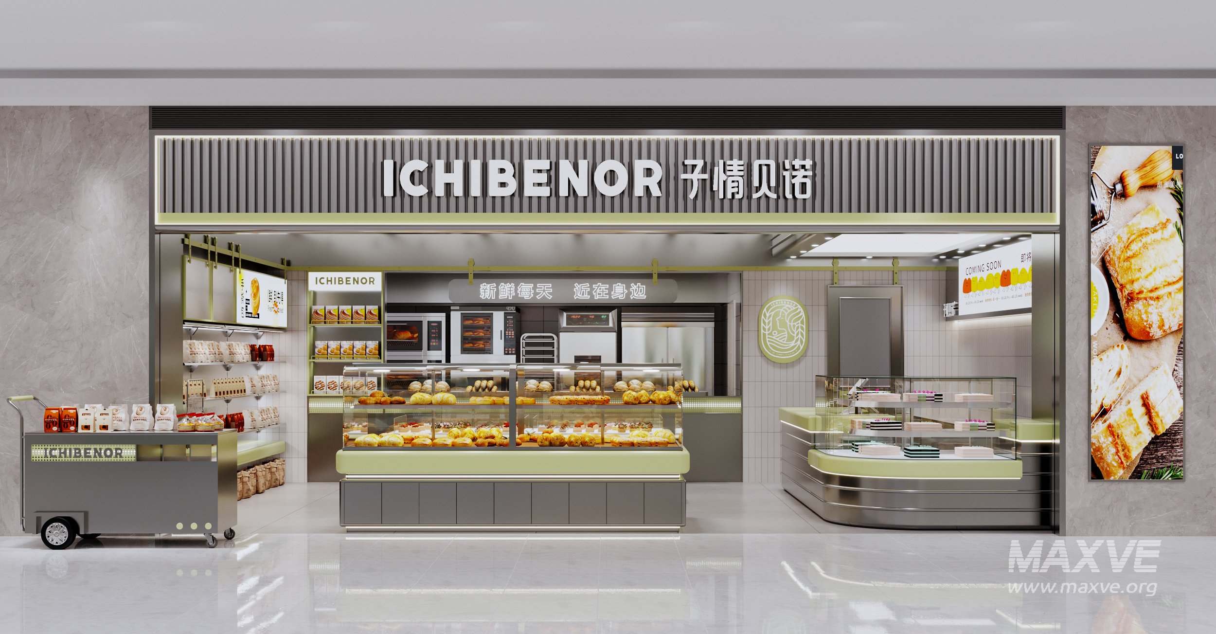 This Modern bakery 3D scene was built in 3ds Max 2021 and rendered using Corona. It includes clean geometry, proper scene organization, and is optimized for smooth rendering performance. The model setup follows standard practices, making it easy to import and adapt into a variety of workflows. Delivered in MAX format, it is well-suited for architectural visualization, concept development, or design presentation. Dominant color tones include: White tones, Beige tones, Silver tones, Gray tones.