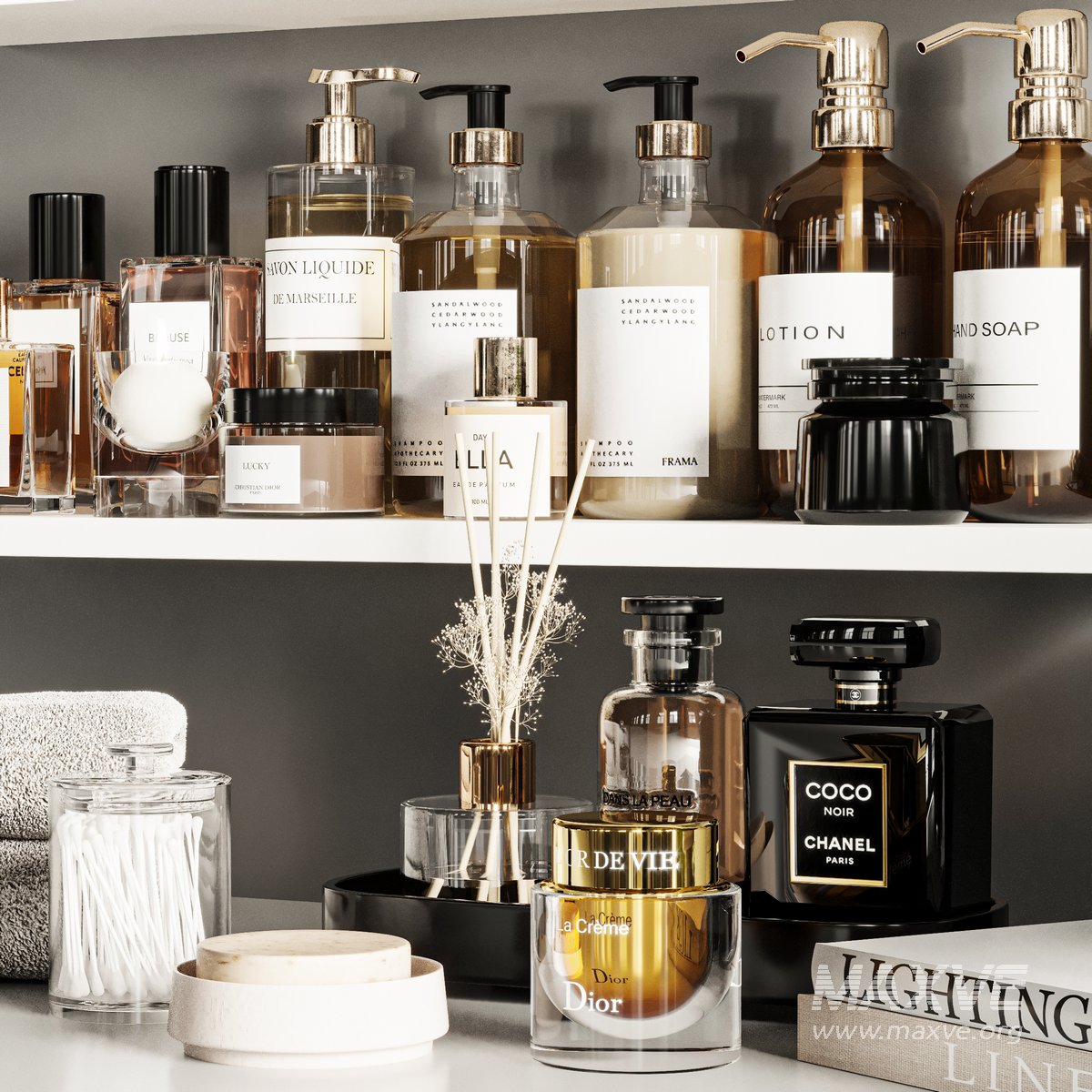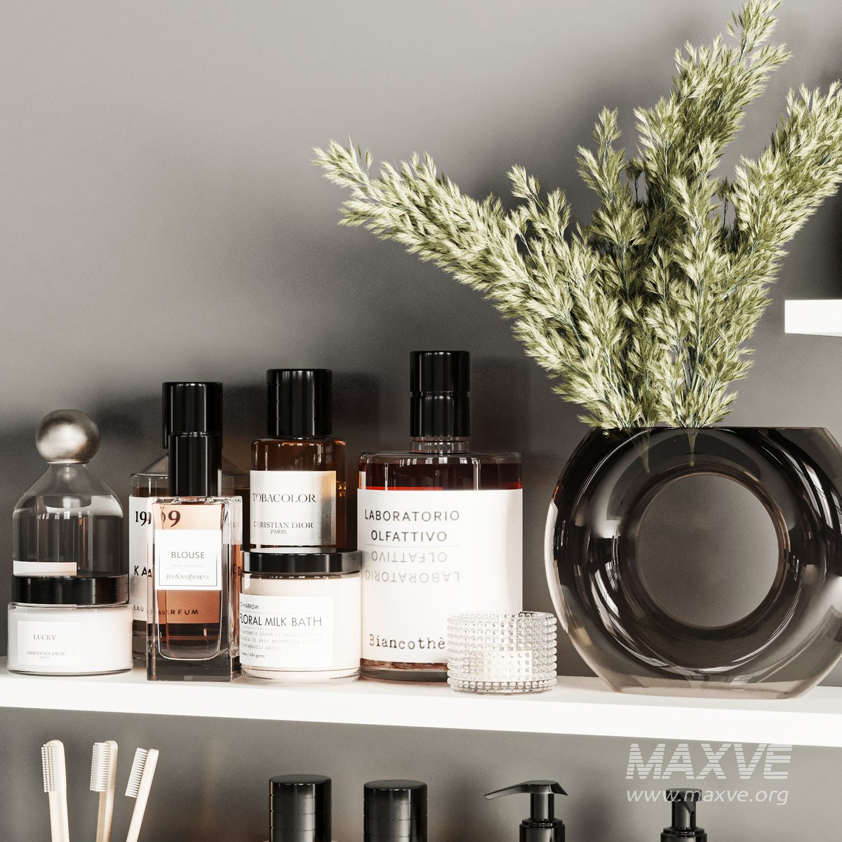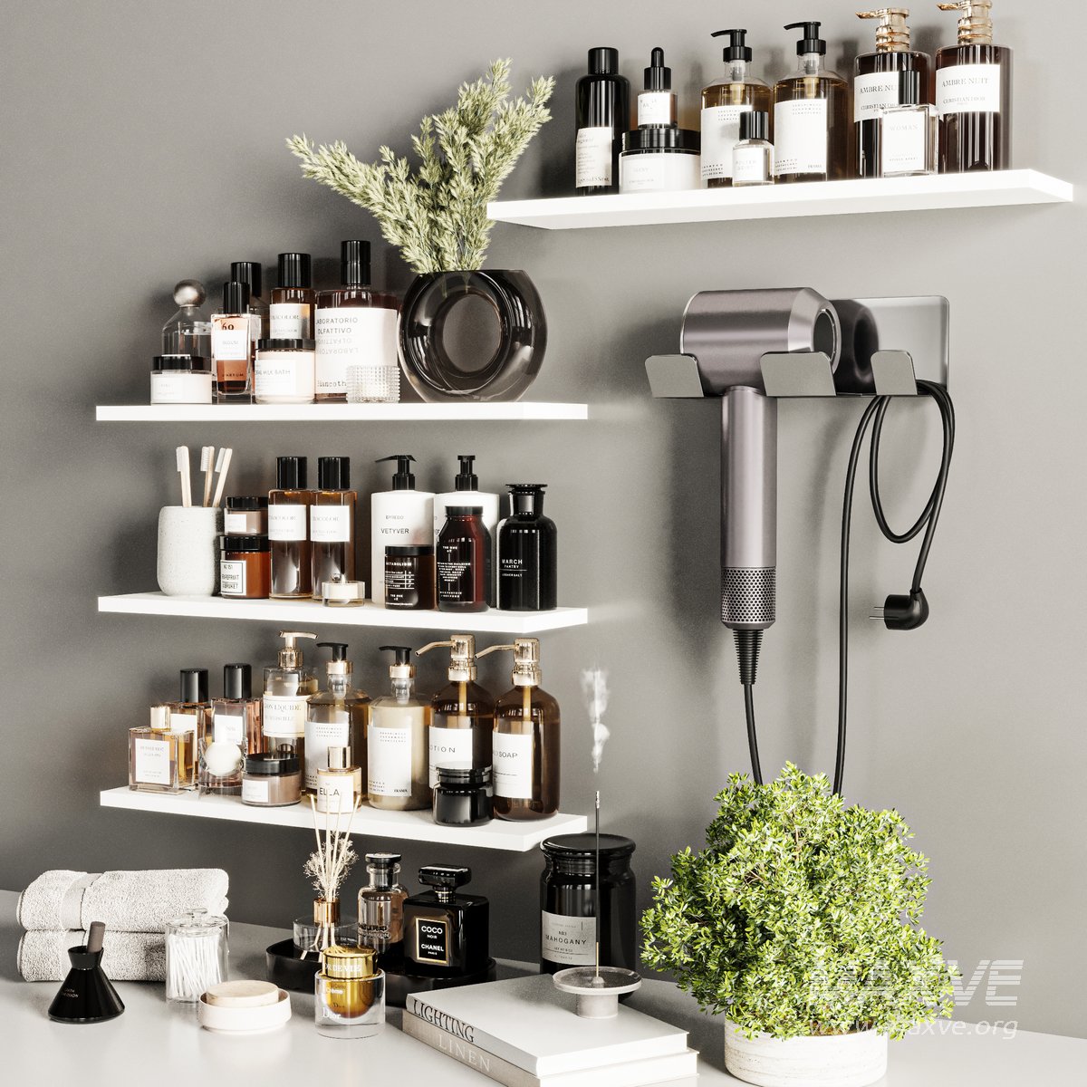 A Bathroom accessories Set for interior design. It is suitable for bathroom. All objects in the scene are logically named. The archive file Max 2016 (Corona+Vray), Fbx (Corona+Vray) and textures.