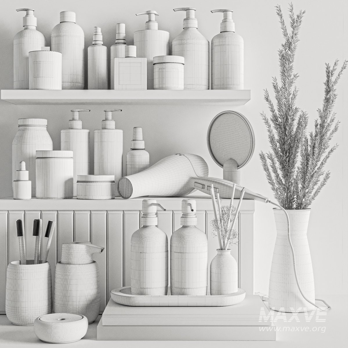 A Bathroom accessories Set for interior design. It is suitable for bathroom. All objects in the scene are logically named. The archive file Max 2016 (Corona + Vray), Fbx (Corona + Vray) and textures.