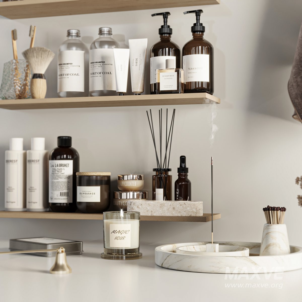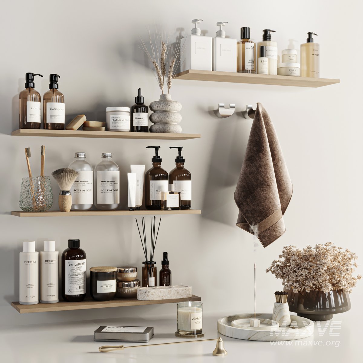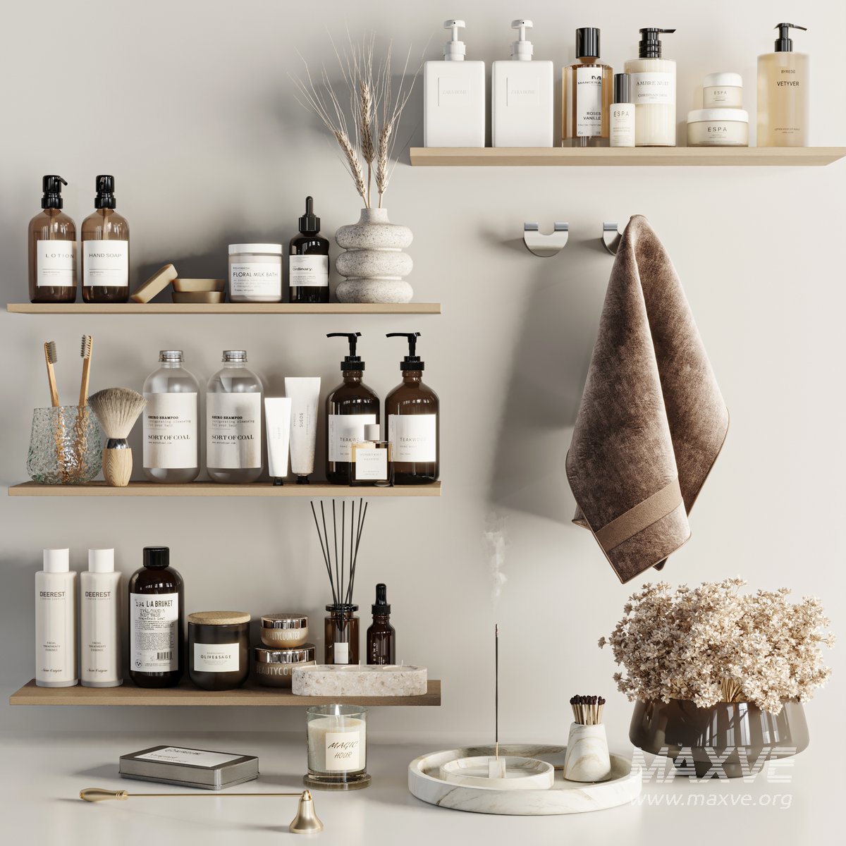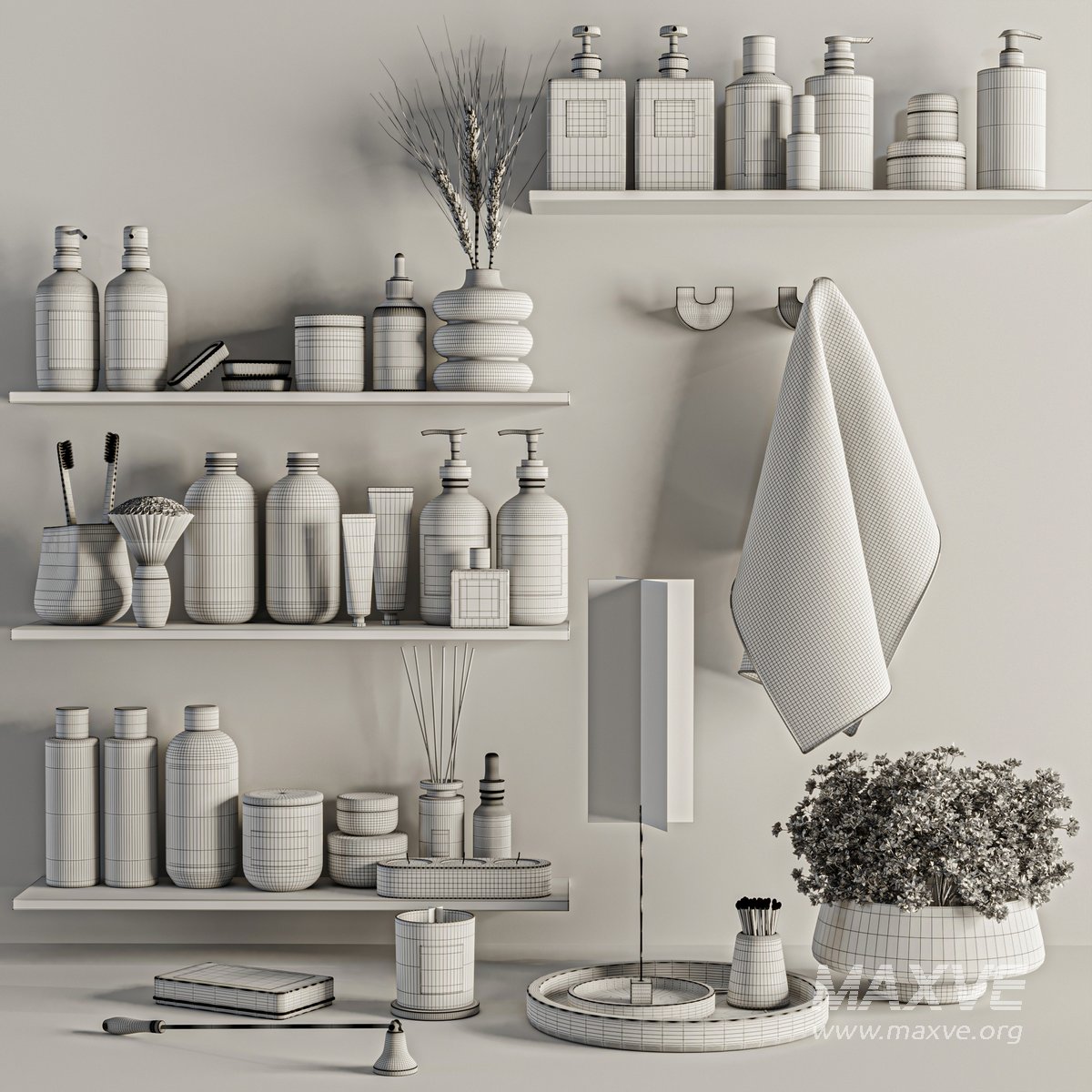A Bathroom accessories Set for interior design. It is suitable for bathroom. All objects in the scene are logically named. The archive file Max 2016 (Corona+Vray), Obj and textures.