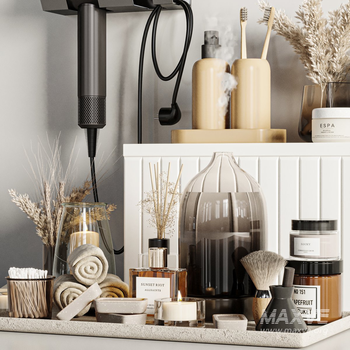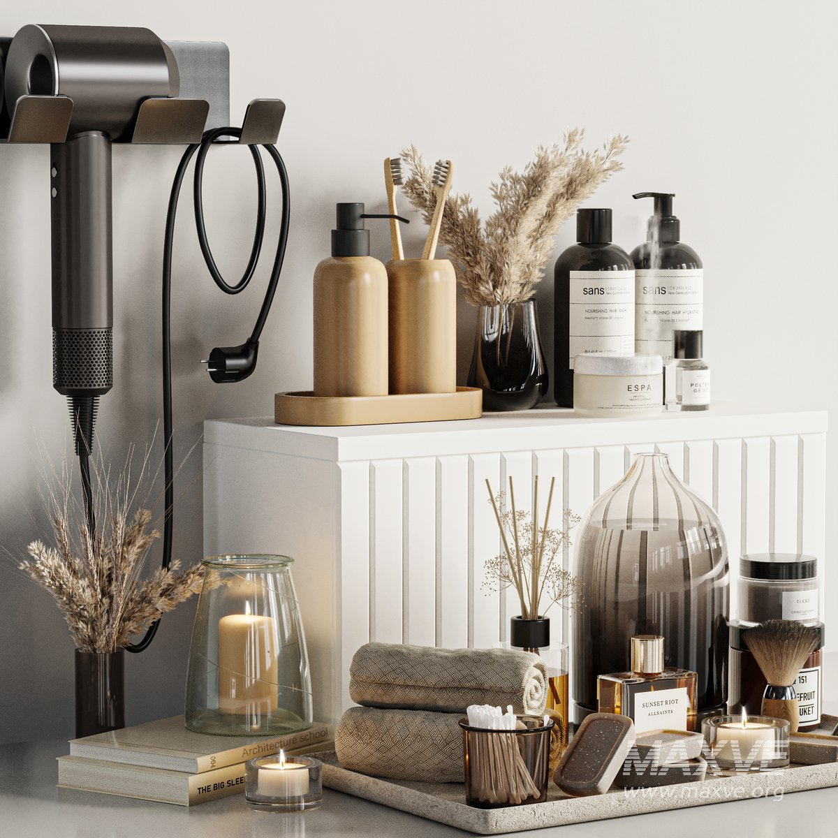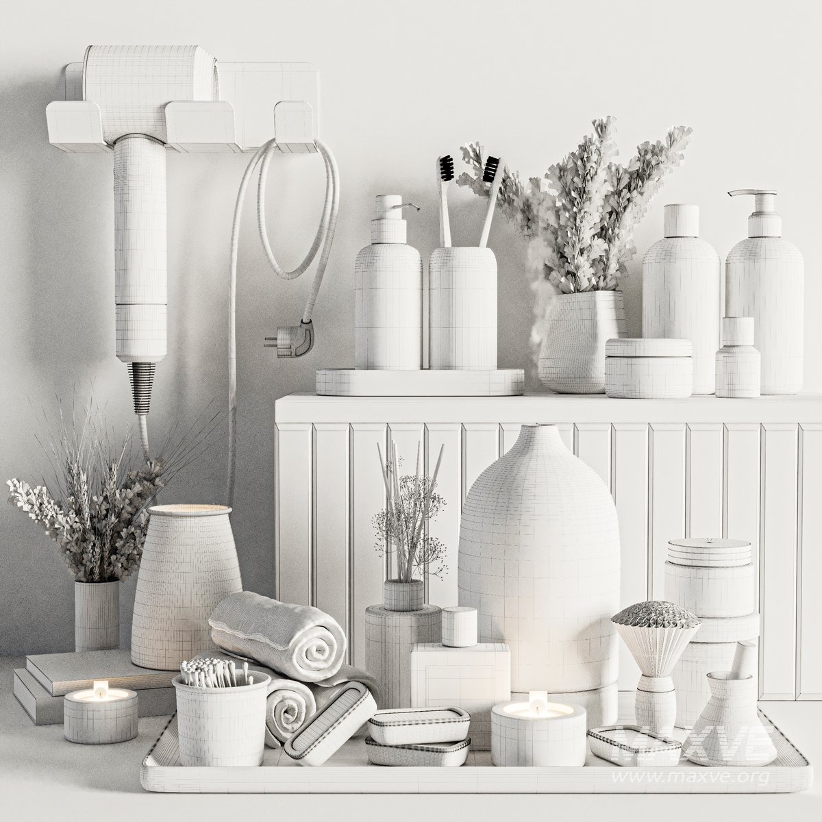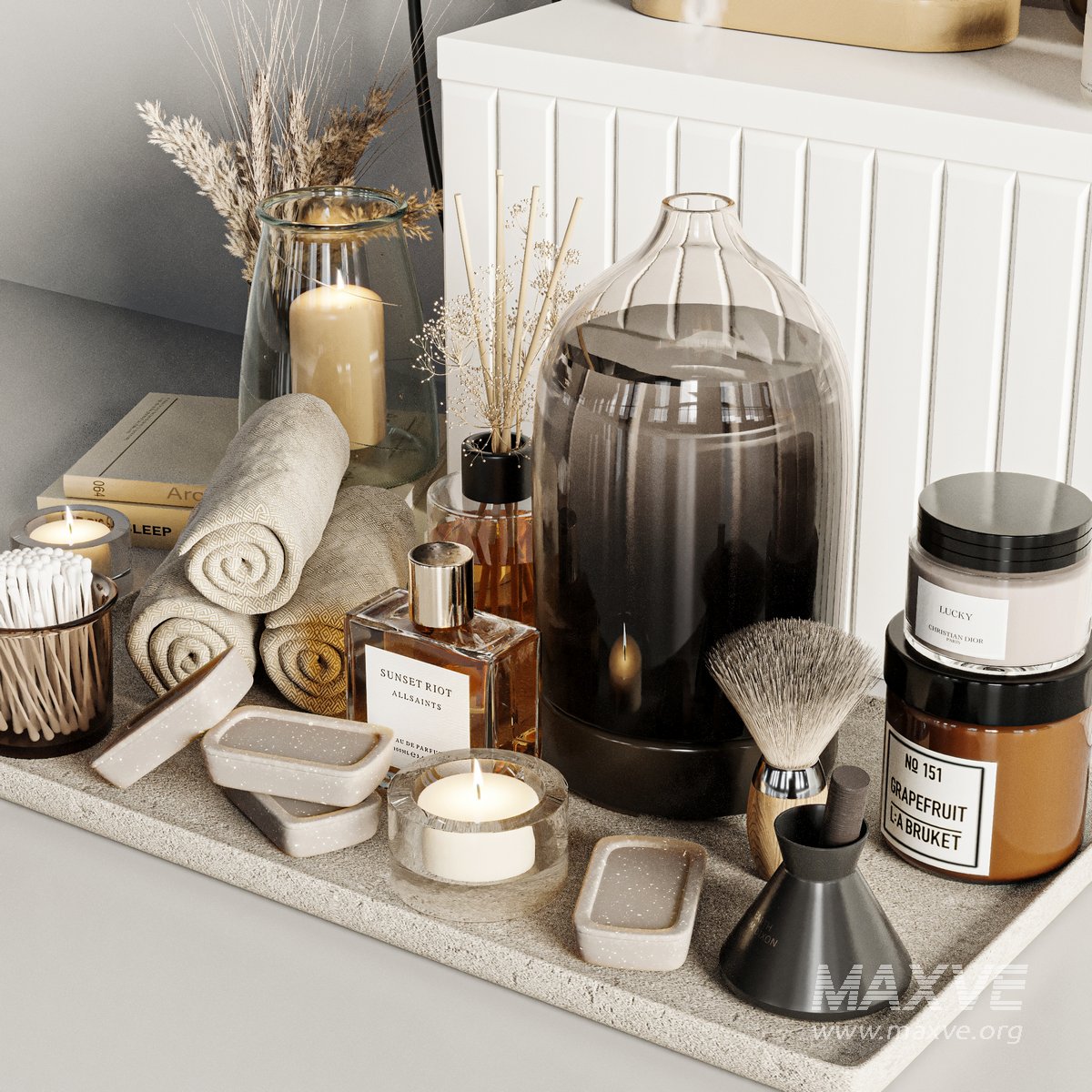 A Bathroom accessories Set for interior design. It is suitable for bathroom. All objects in the scene are logically named. The archive file Max 2016 (Corona), Fbx (Corona) and textures.