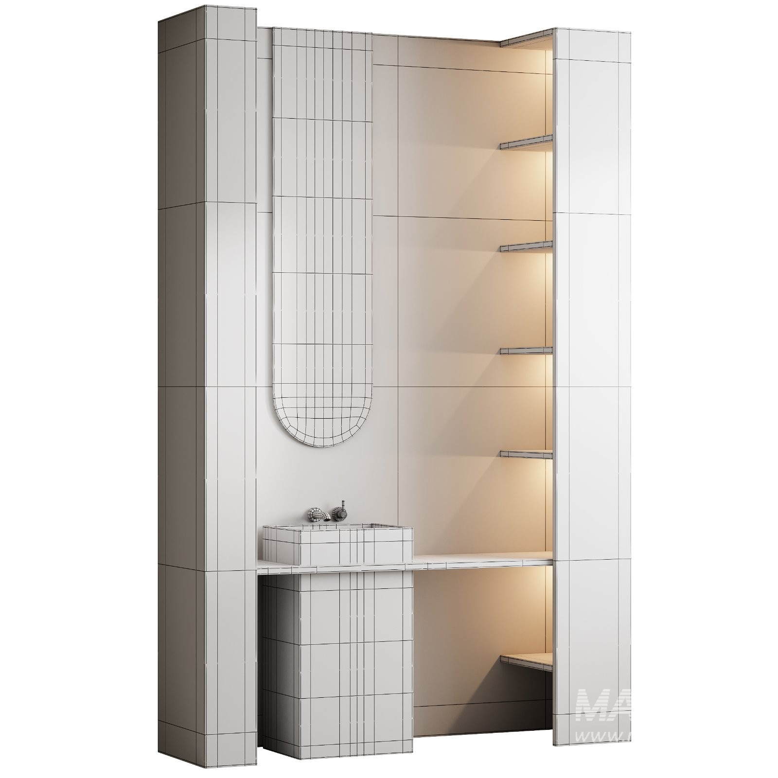 Tags: bathroom furniture, modern vanity set, interior furniture, corona renderer, 3ds max model, fbx, obj, contemporary bathroom, storage unit, minimalist design, architectural visualization, premium interior asset, realistic materials, cabinetry model, bathroom decor, 3d furniture set, clean lines, functional design, render ready model, detailed bathroom asset