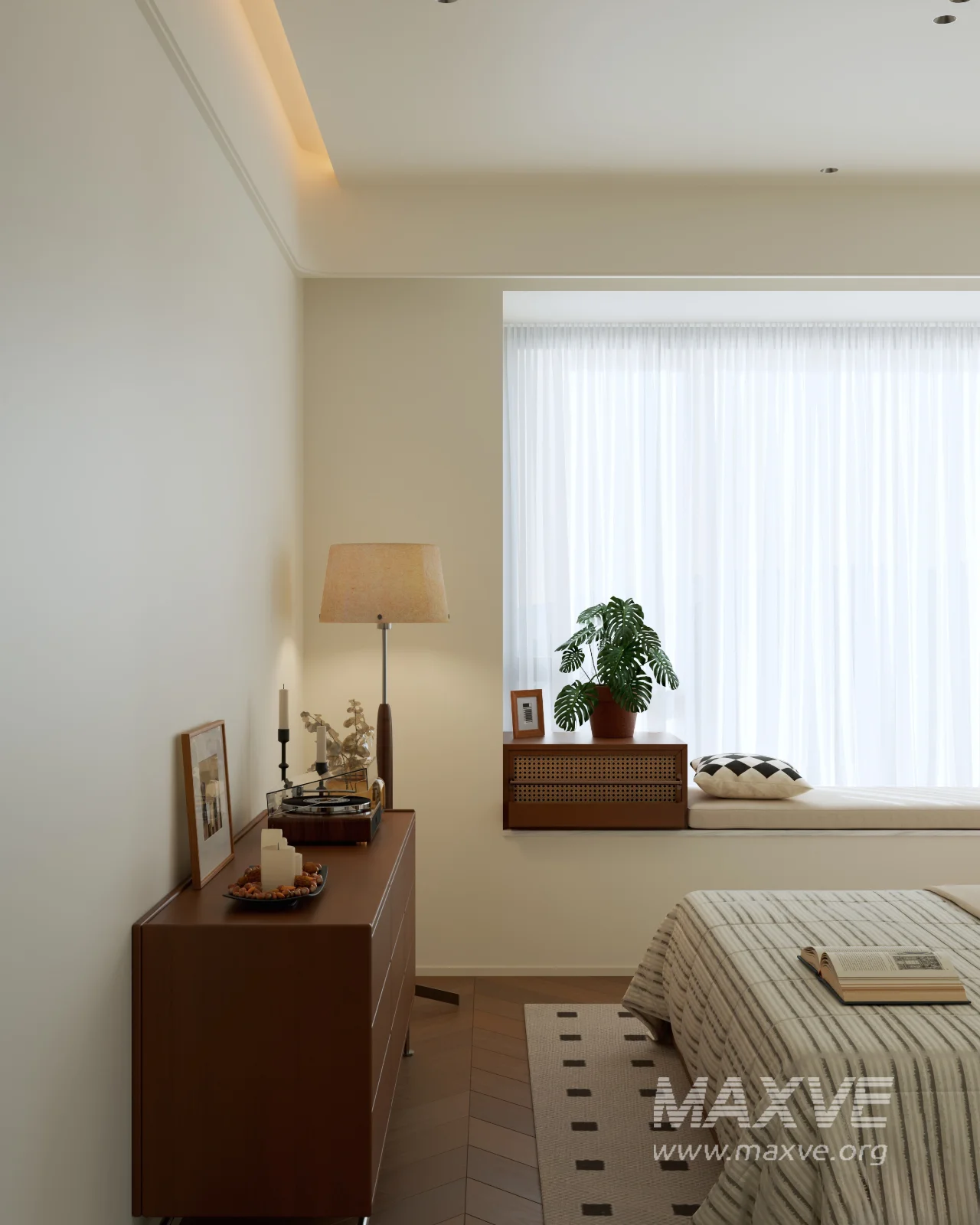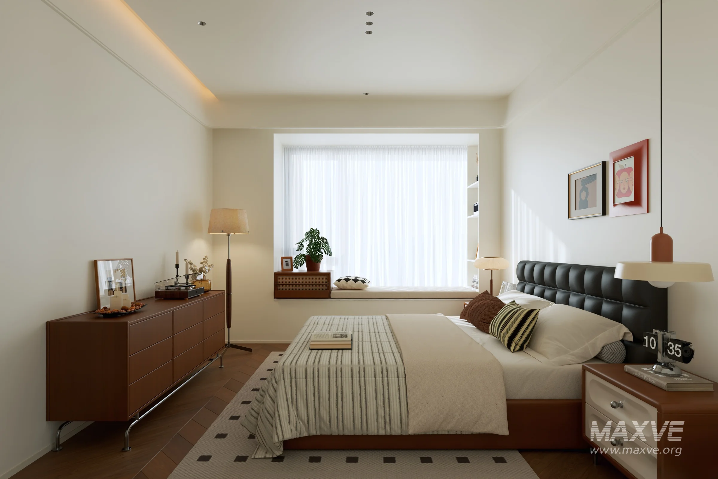 This Modern Bedroom interior 3D scene was built in 3ds Max 2021 and rendered using Corona. It includes clean geometry, proper scene organization, and is optimized for smooth rendering performance. The model setup follows standard practices, making it easy to import and adapt into a variety of workflows. Delivered in MAX format, it is well-suited for architectural visualization, concept development, or design presentation. Dominant color tones include: White tones, Beige tones.