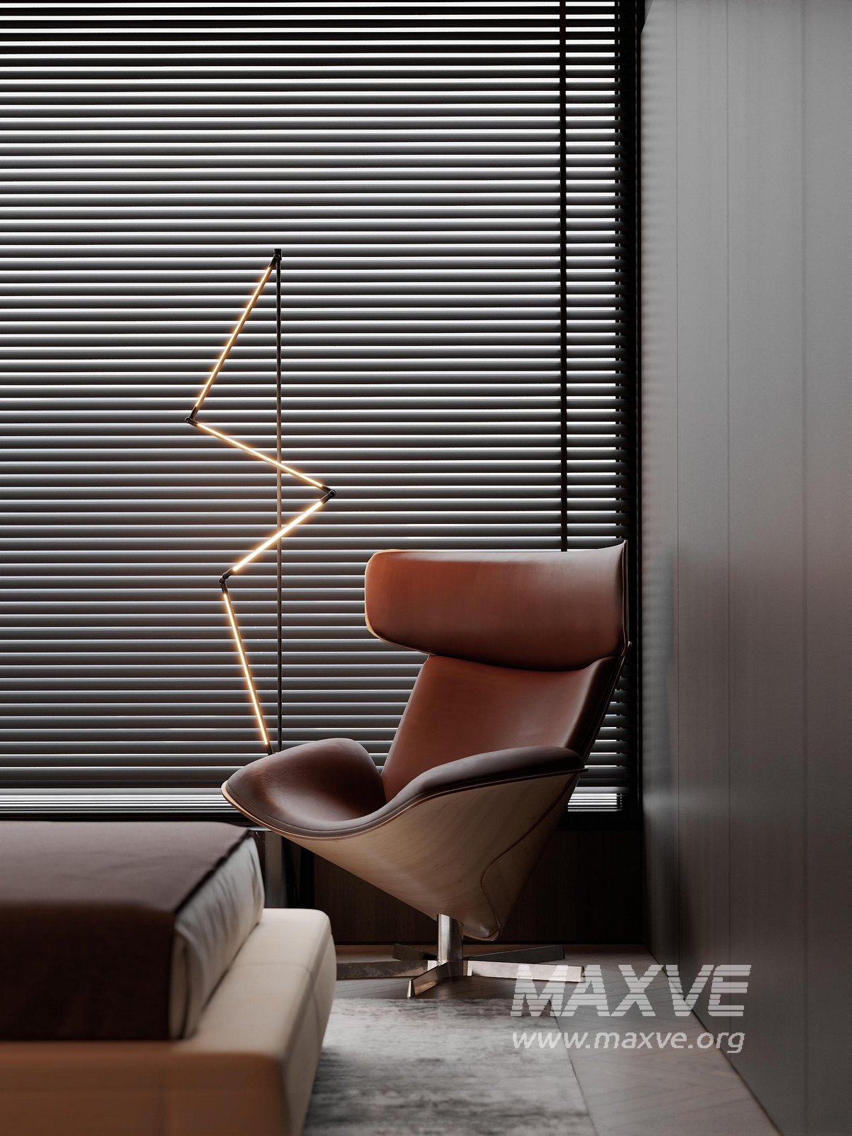 This fully textured interior scene with natural light setup is ready to render with Corona Renderer for 3D Studio MAX. This file does not have any type of protection. You can reuse the scene, the render settings, the lights, the materials, but above all, you can learn from the file by moving inside the project, observing how the light was created and handled, how materials are developed, what role each texture plays within them, and the values used in every single option.
