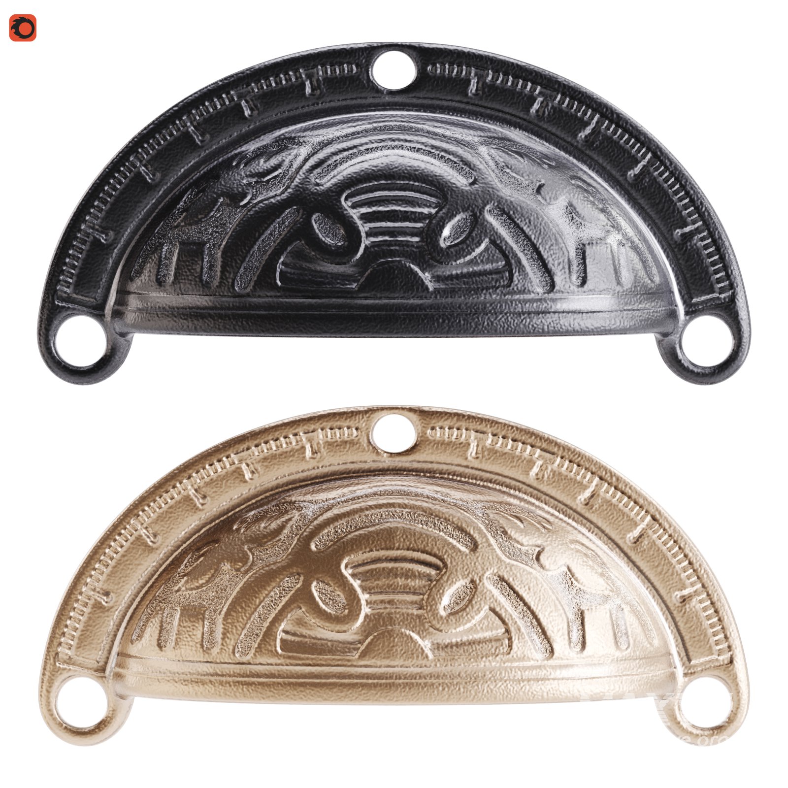 Tags: cup pull, bin pull, cabinet hardware, drawer handle, wrought iron, black pull, vintage hardware, rustic handle, traditional cabinet pull, furniture accessory, iron cup pull, antique style, classic drawer pull, cabinet accessory, hardware fitting, durable handle, 3D model, old-fashioned hardware, interior decor, decorative pull
