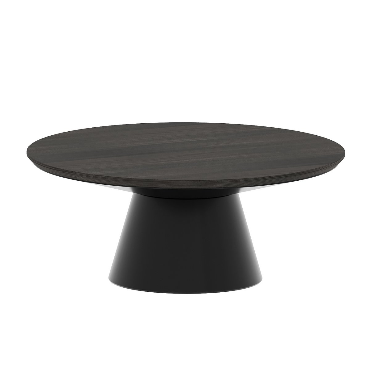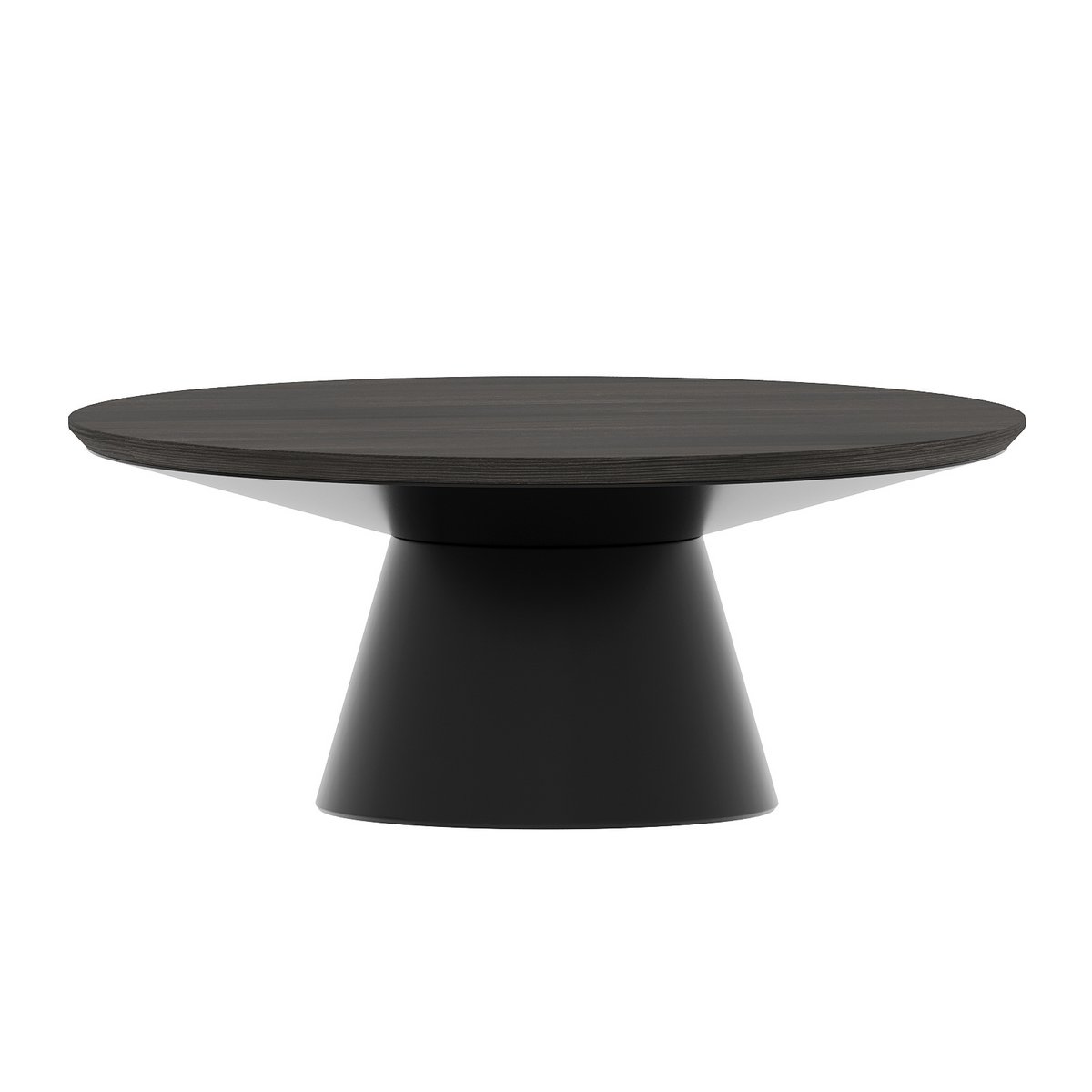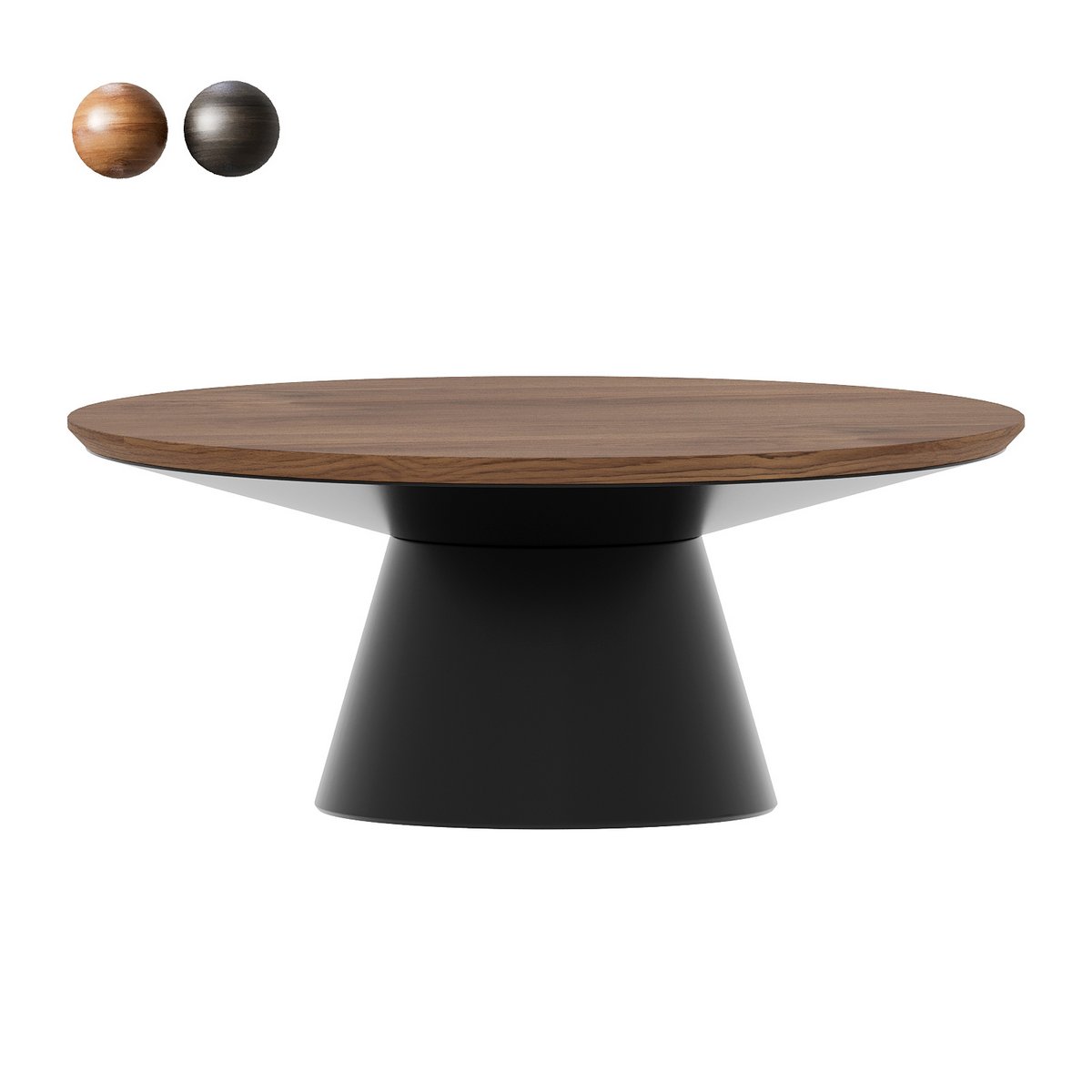 Black Metal Pedetal Base With Brown Wood Top Coffee Table
