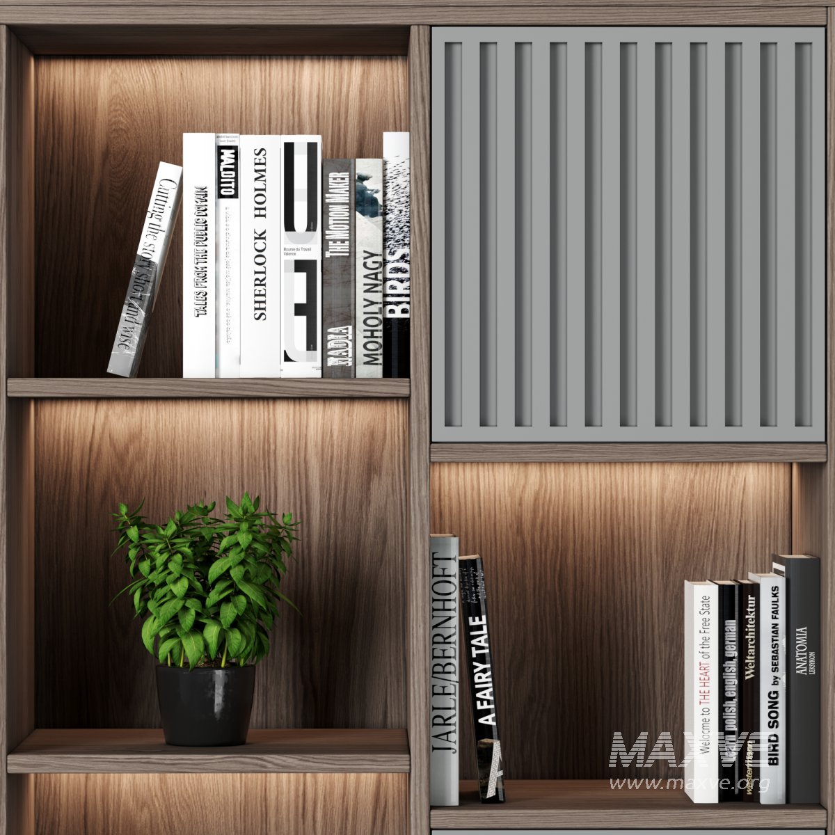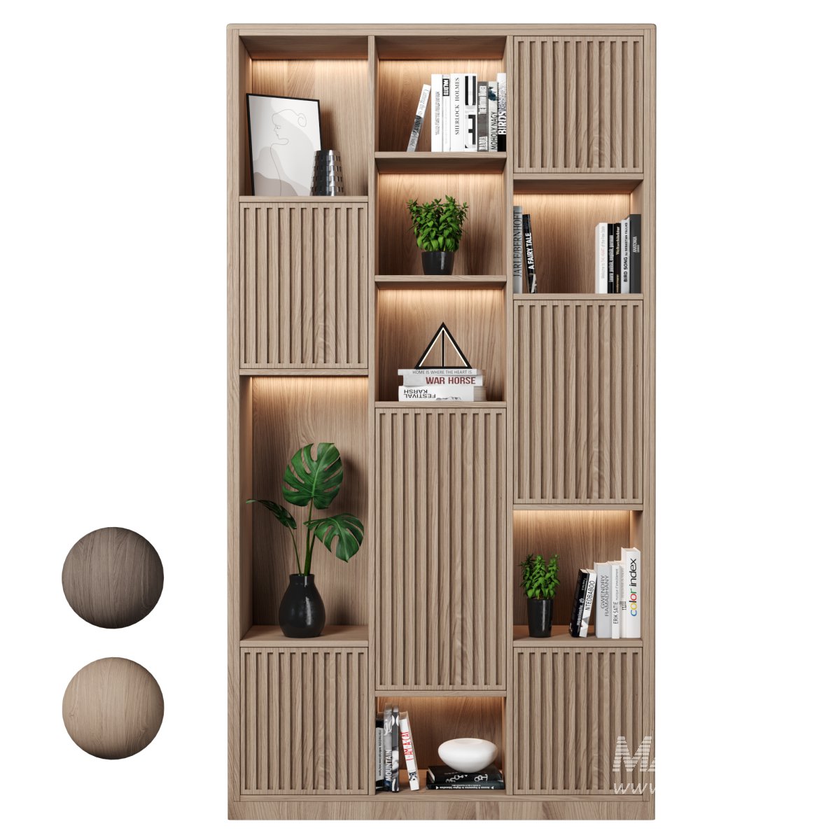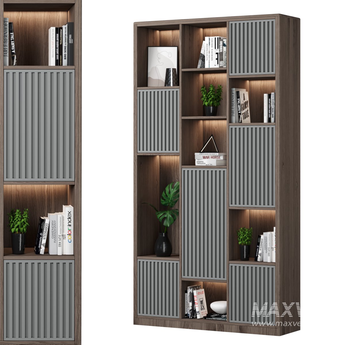 ● Each Bookcase is a separate object and you can easily change it for your project.
