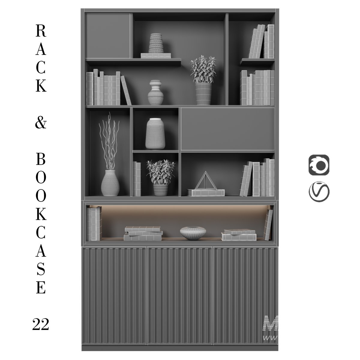 ● Each Bookcase is a separate object and you can easily change it for your project.