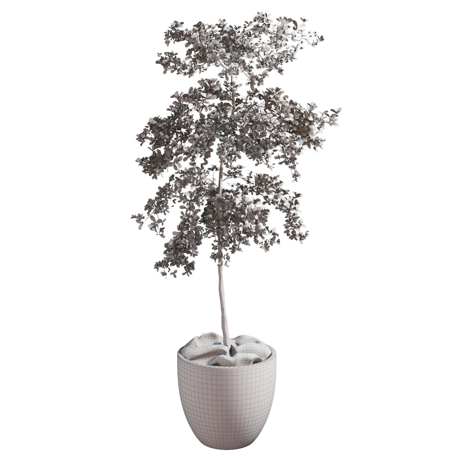 The pot's handmade, weathered look perfectly complements the organic shape of the Bucida Buceras, making this model a striking focal point for both modern and naturalistic interiors. All assets are optimized for V-Ray and Corona rendering engines and ready to drop into high-end visualizations.