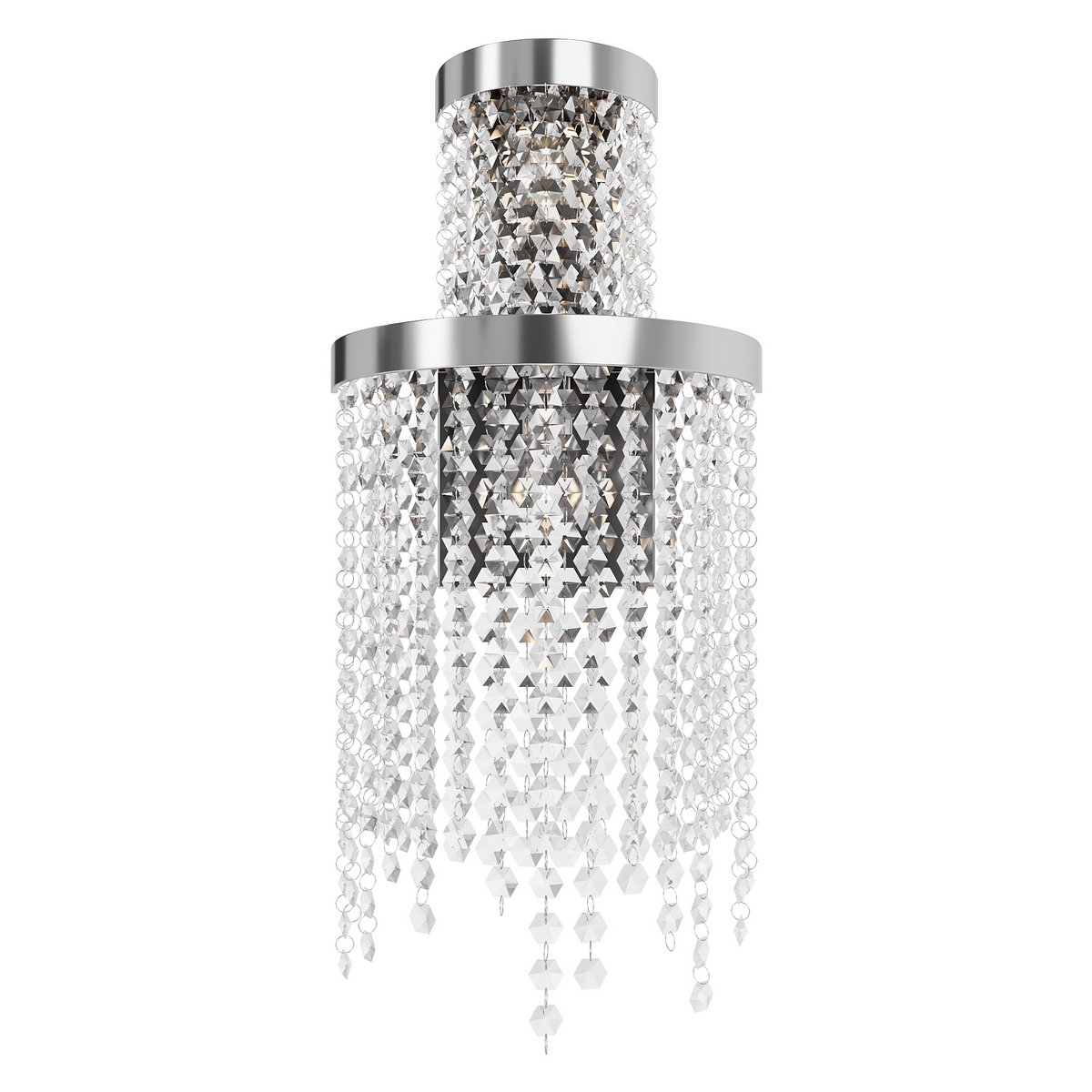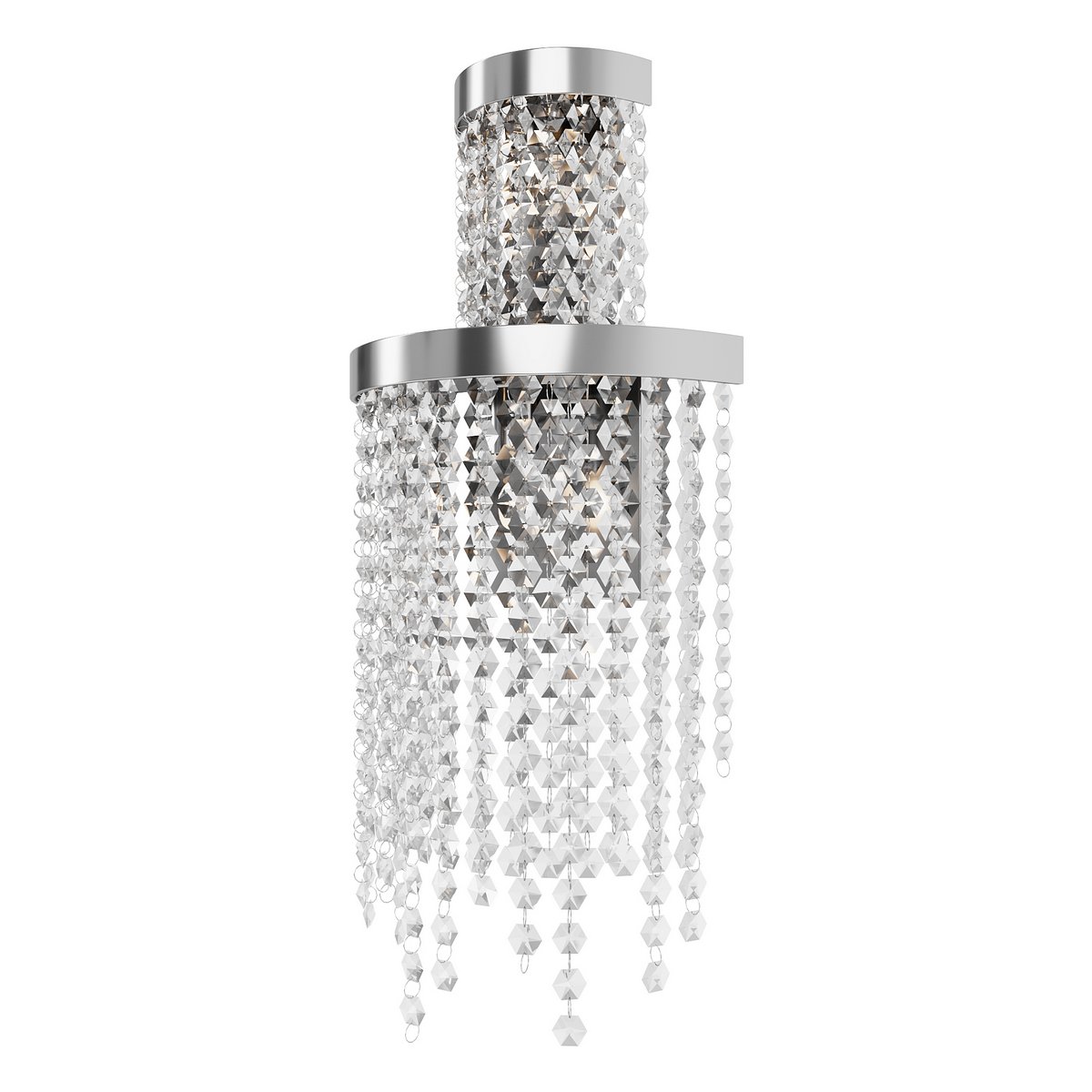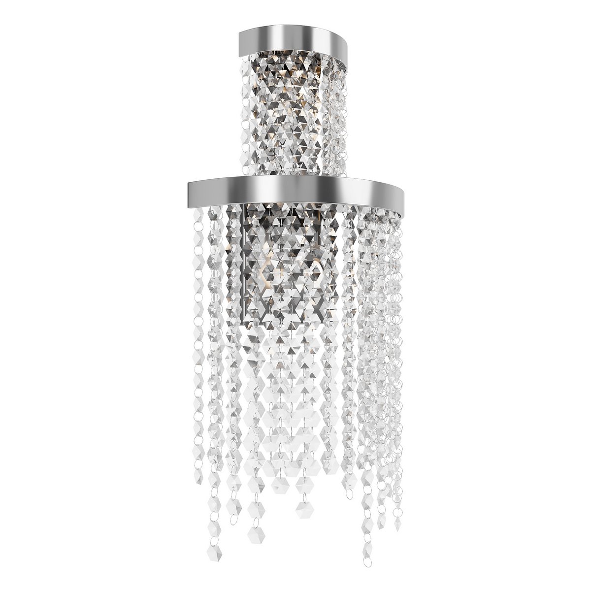 The royal Cascada sconce is an elite modern solution for lighting your home. Its special feature is a cascade of sparkling crystals that fall like a waterfall from a chrome base. Made of stainless steel and glass, the product combines durability and elegance. The chrome finish will add a touch of sophistication and elegance to your interior. The Cascada sconce will fit perfectly into a modern interior, and will also complement the luxury of a home decorated in a classic style.