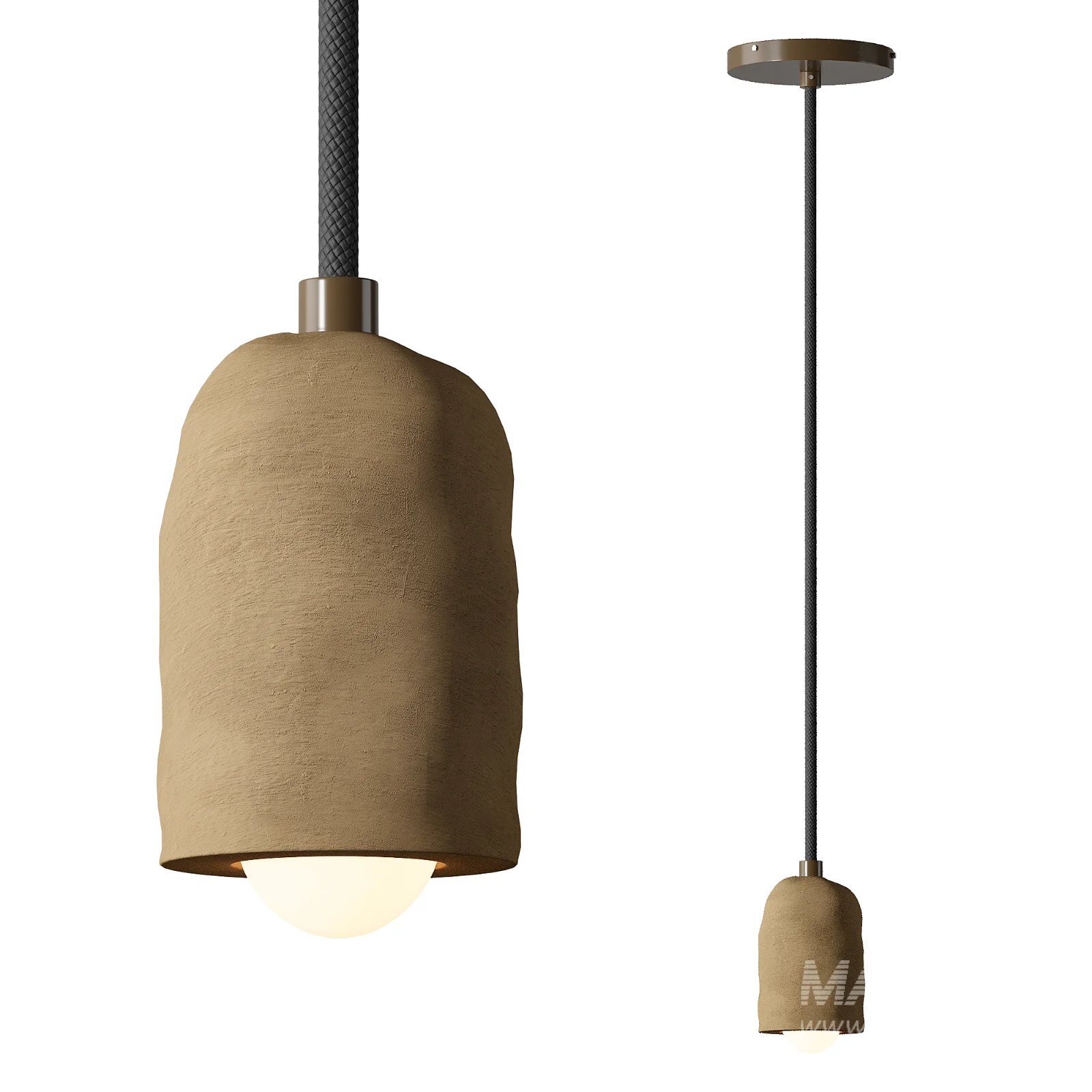 High-quality 3D model of the Ceramic Spot Pendant light, created with accurate proportions and realistic surface detail. The pendant features a handcrafted ceramic shade with a subtle organic texture, combined with a fabric cable and clean metal fittings. The model is scaled to real-world dimensions and optimized for professional use, making it suitable for architectural visualization, interior design projects, and product renders. Fully compatible with Corona Renderer and ready for close-up and wide-angle scenes.