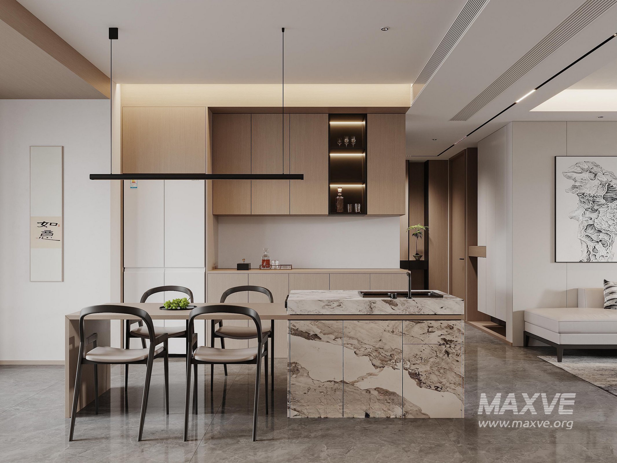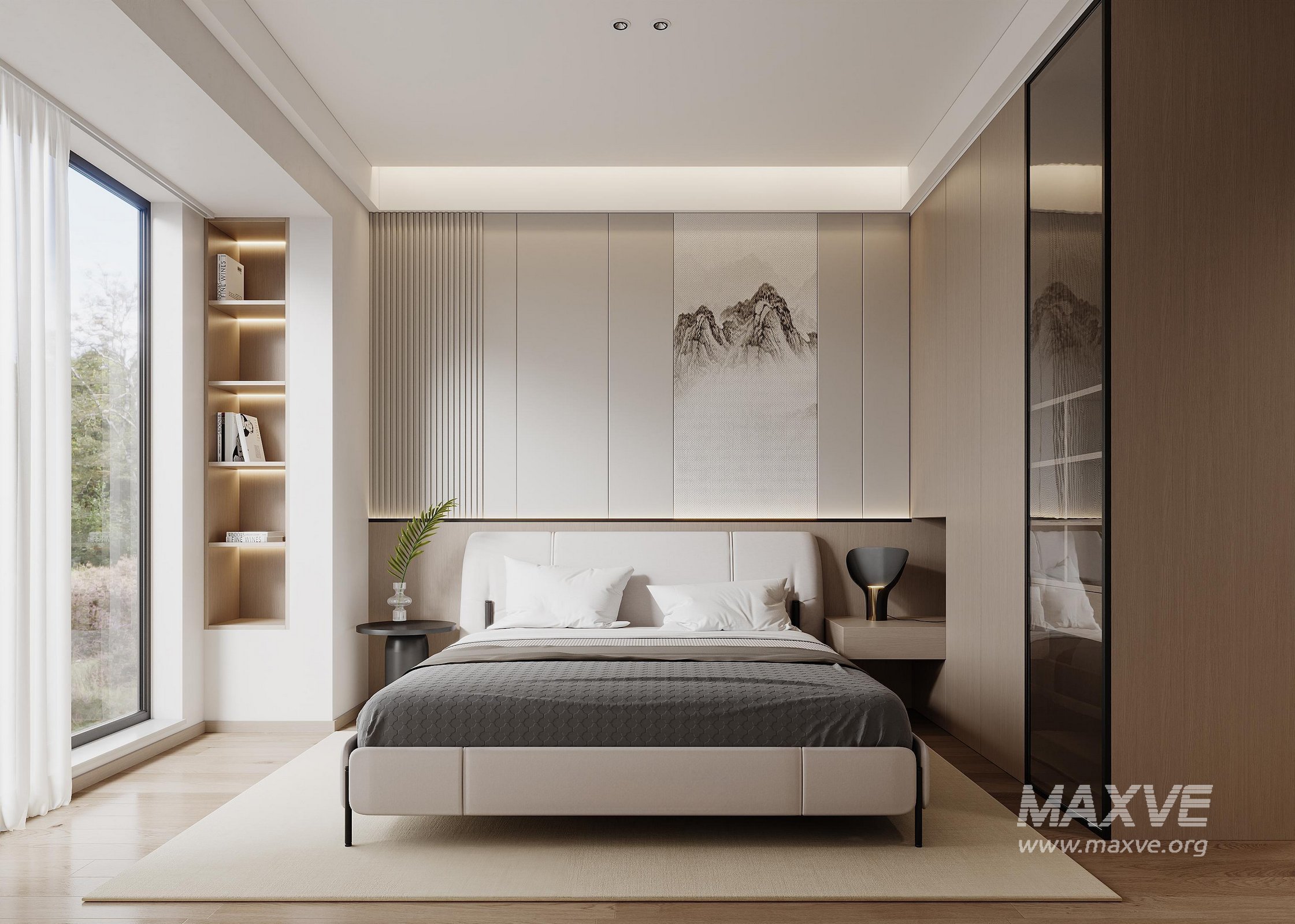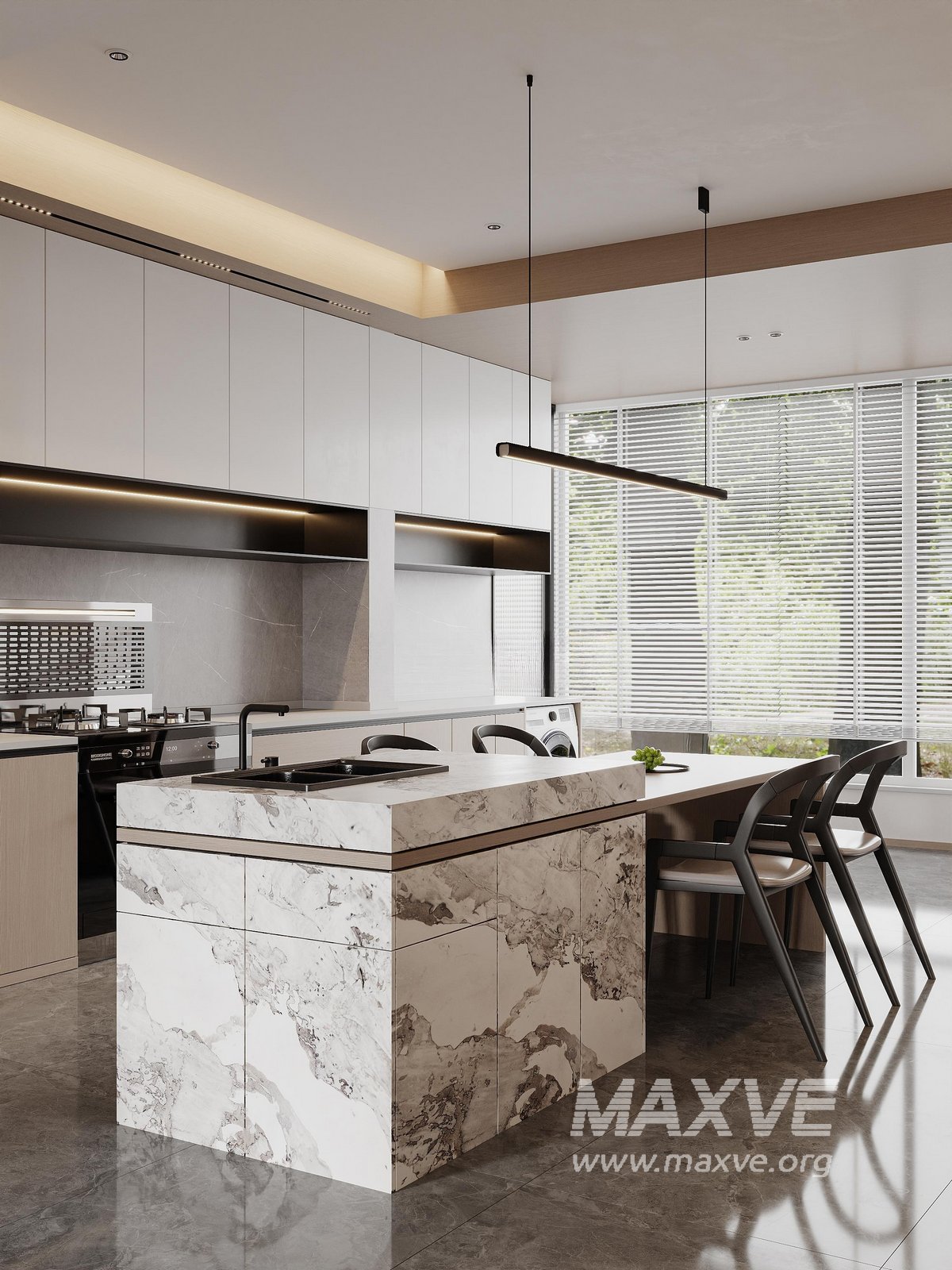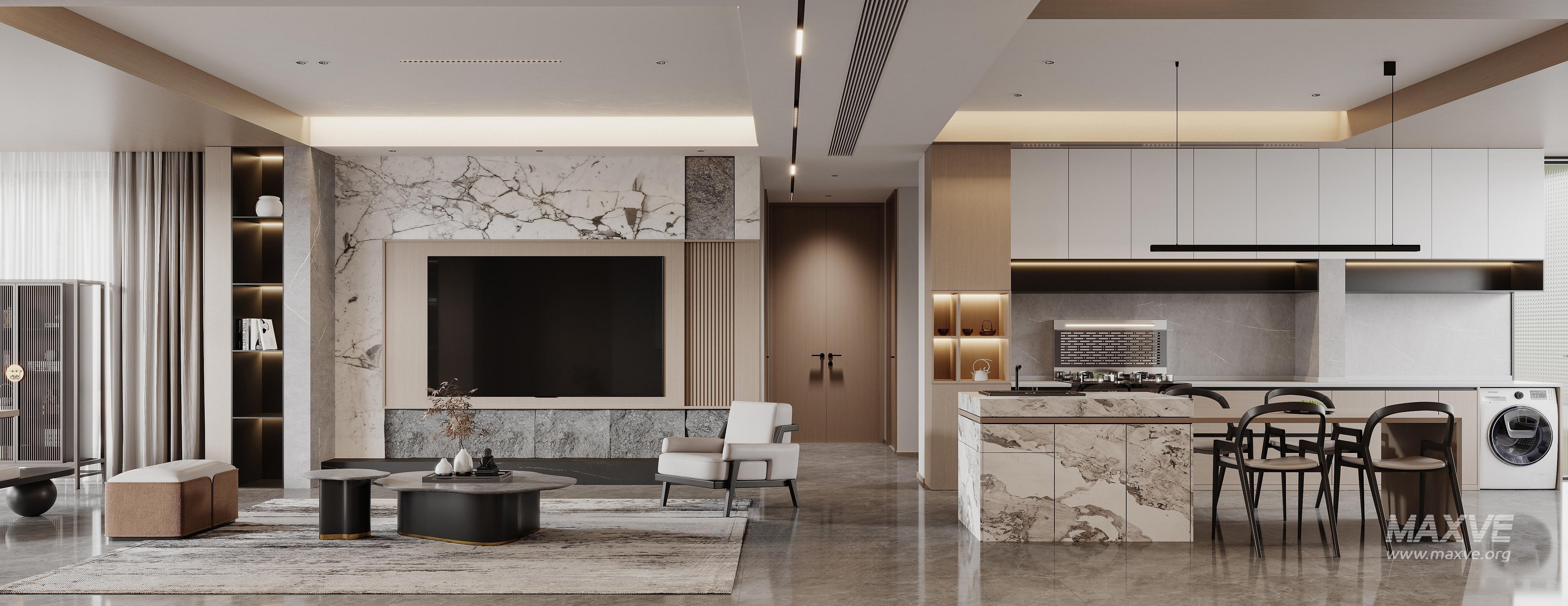This fully textured interior scene with natural light setup is ready to render with Corona Renderer for 3D Studio MAX. This file does not have any type of protection. You can reuse the scene, the render settings, the lights, the materials, but above all, you can learn from the file by moving inside the project, observing how the light was created and handled, how materials are developed, what role each texture plays within them, and the values used in every single option.