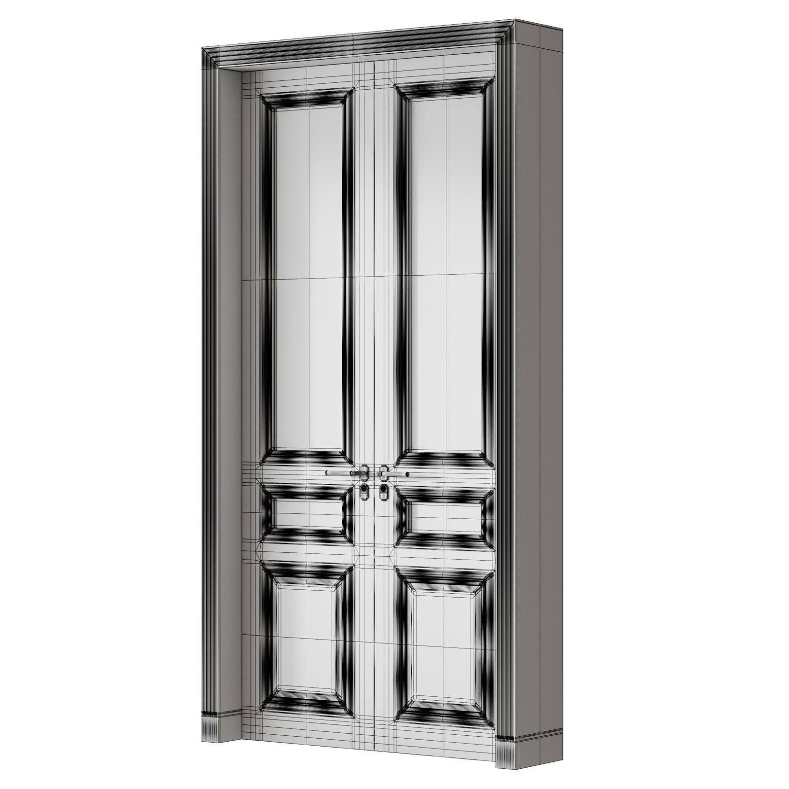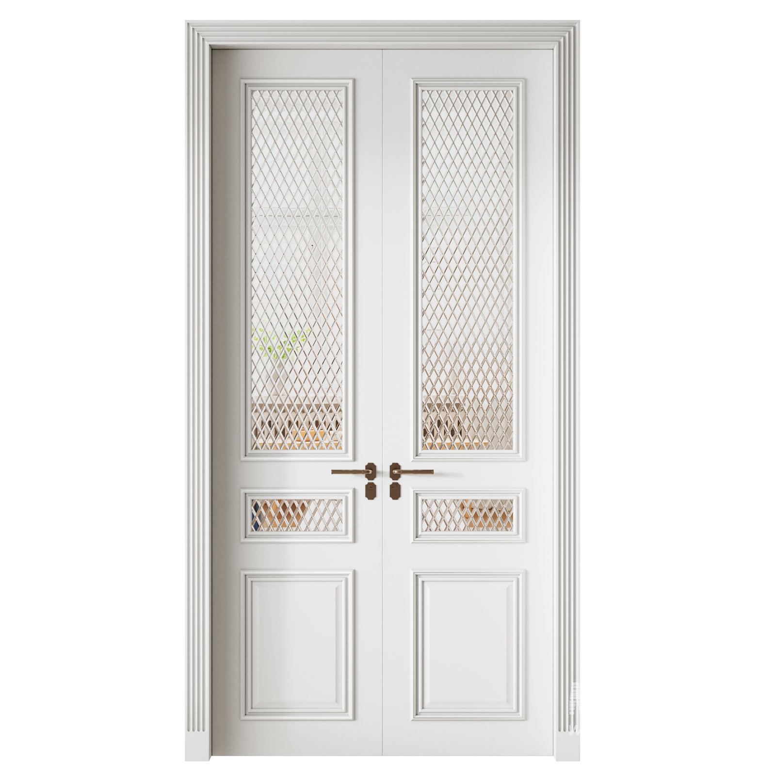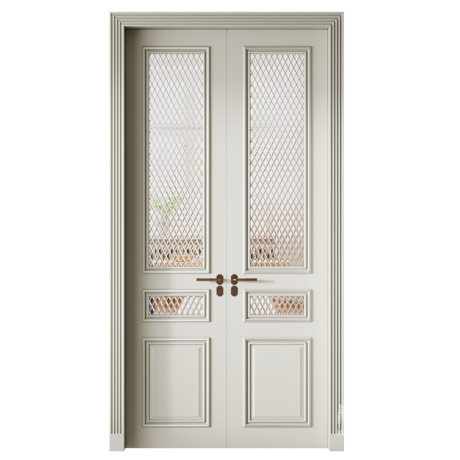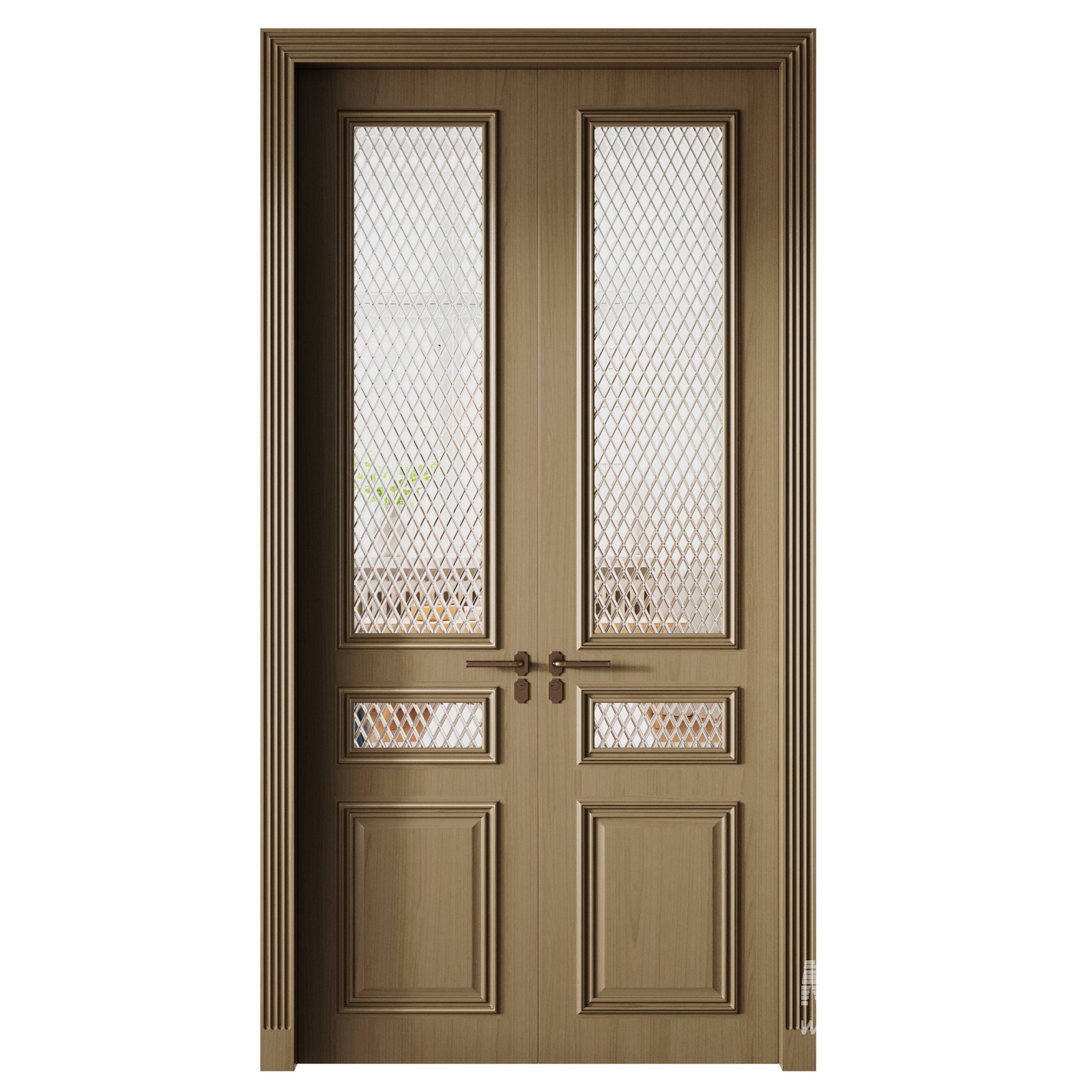 Tags: interior door, classic design, double doors, decorative panels, Vray model, architectural elements, 3D door model, elegant doors, lattice glass, traditional interior, wooden doors, luxury interior, vintage style, room divider, house doors, decorative molding, realistic render, interior visualization, high quality model, architectural visualization