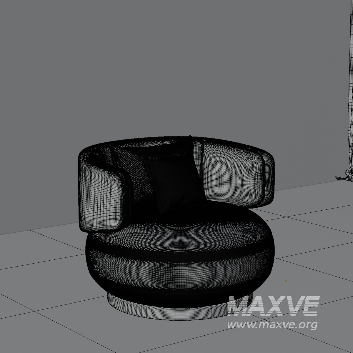 A soft and stylish round lounge chair designed for cozy interiors. This 3D model features smooth fabric upholstery, rounded arms, and accent cushions for added comfort and detail. Perfect for modern or minimalist living rooms, reading corners, or waiting areas.