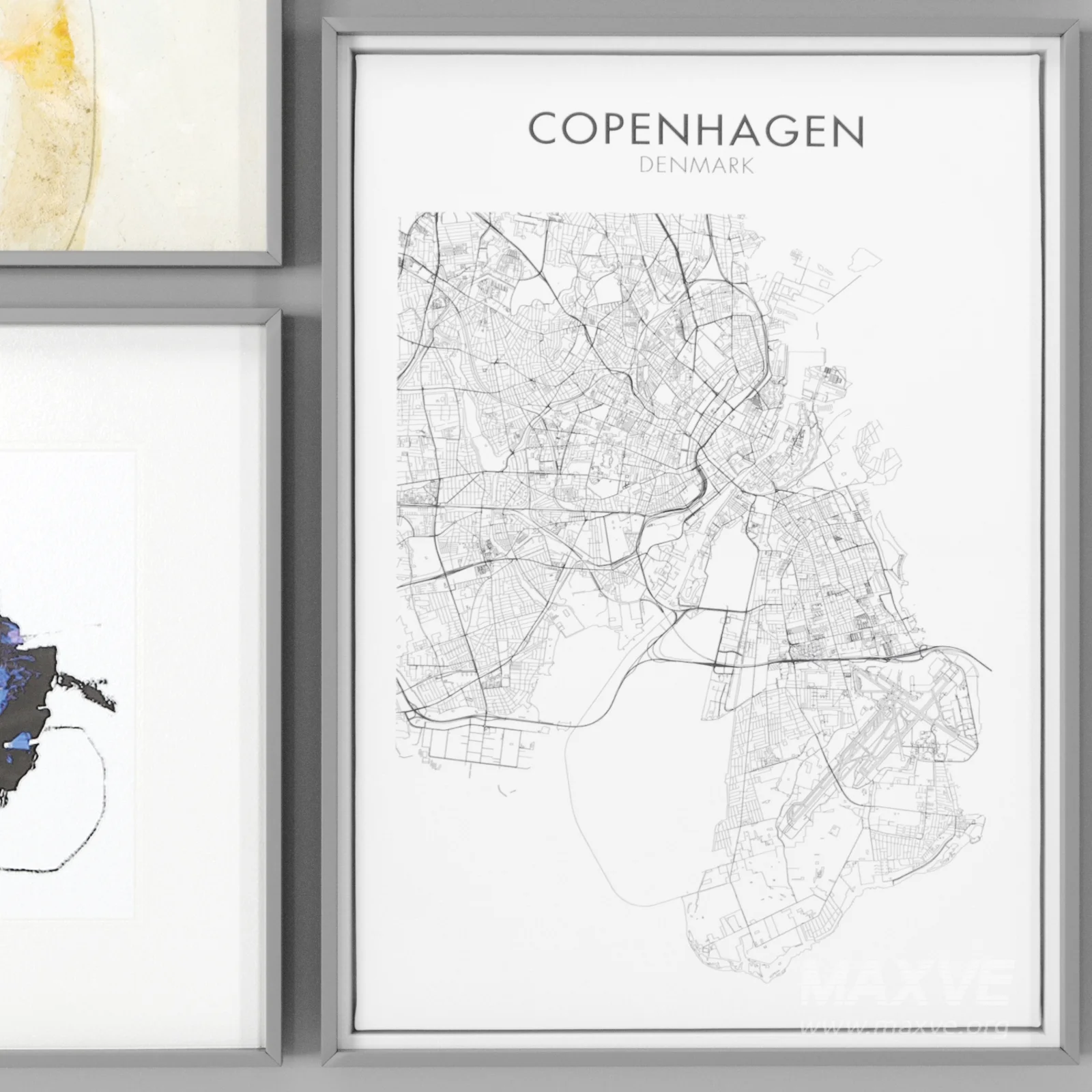 wood, frame, metal, gold, black, painting, wood frame, art, minimal decor, minimal, poster, decoration, on the wall, modern, decorative, abstract, canvase, blue, white, Daydream, Synergy, copenhagen, map, world,