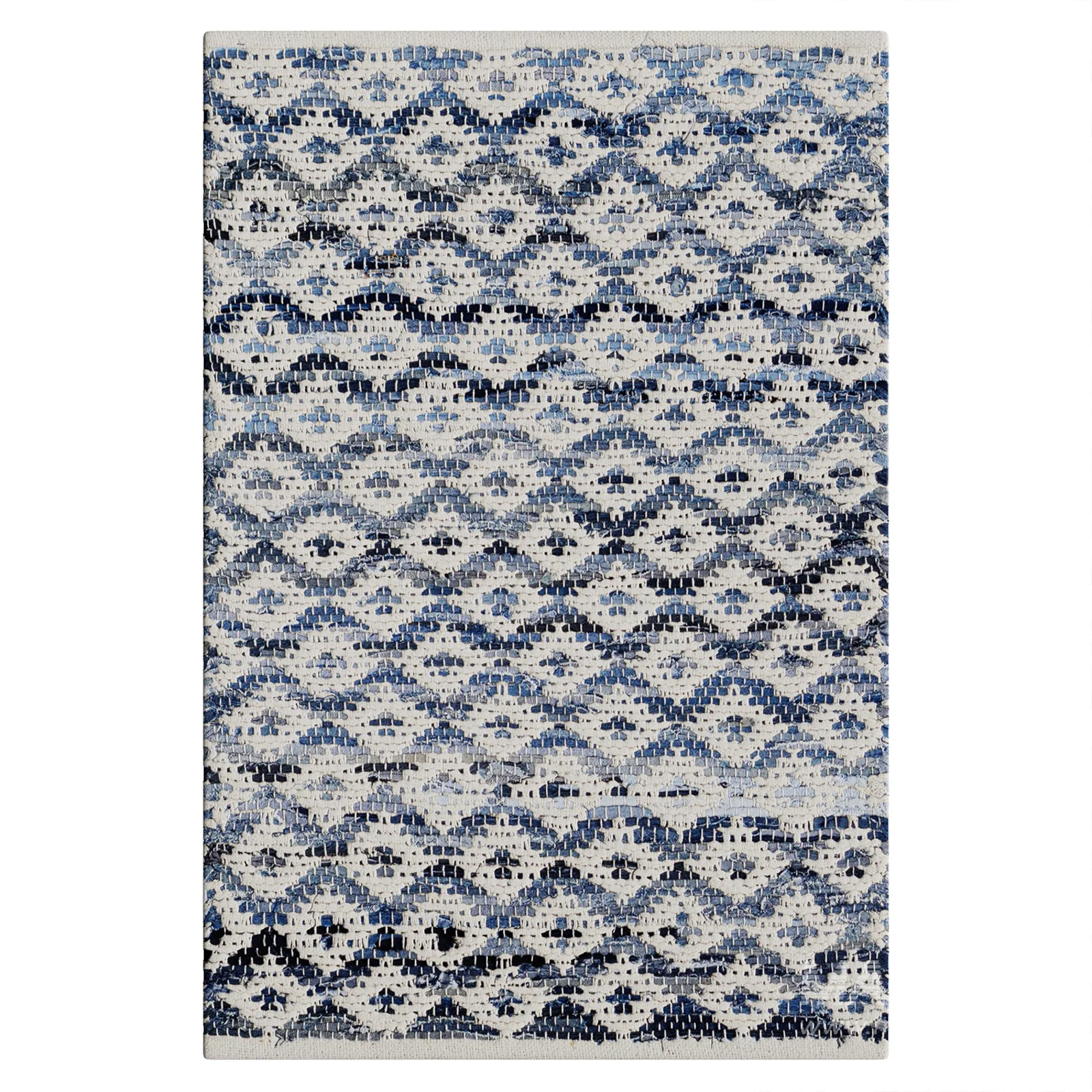 Denim Rag Diamond Ivory Handwoven Cotton Rug