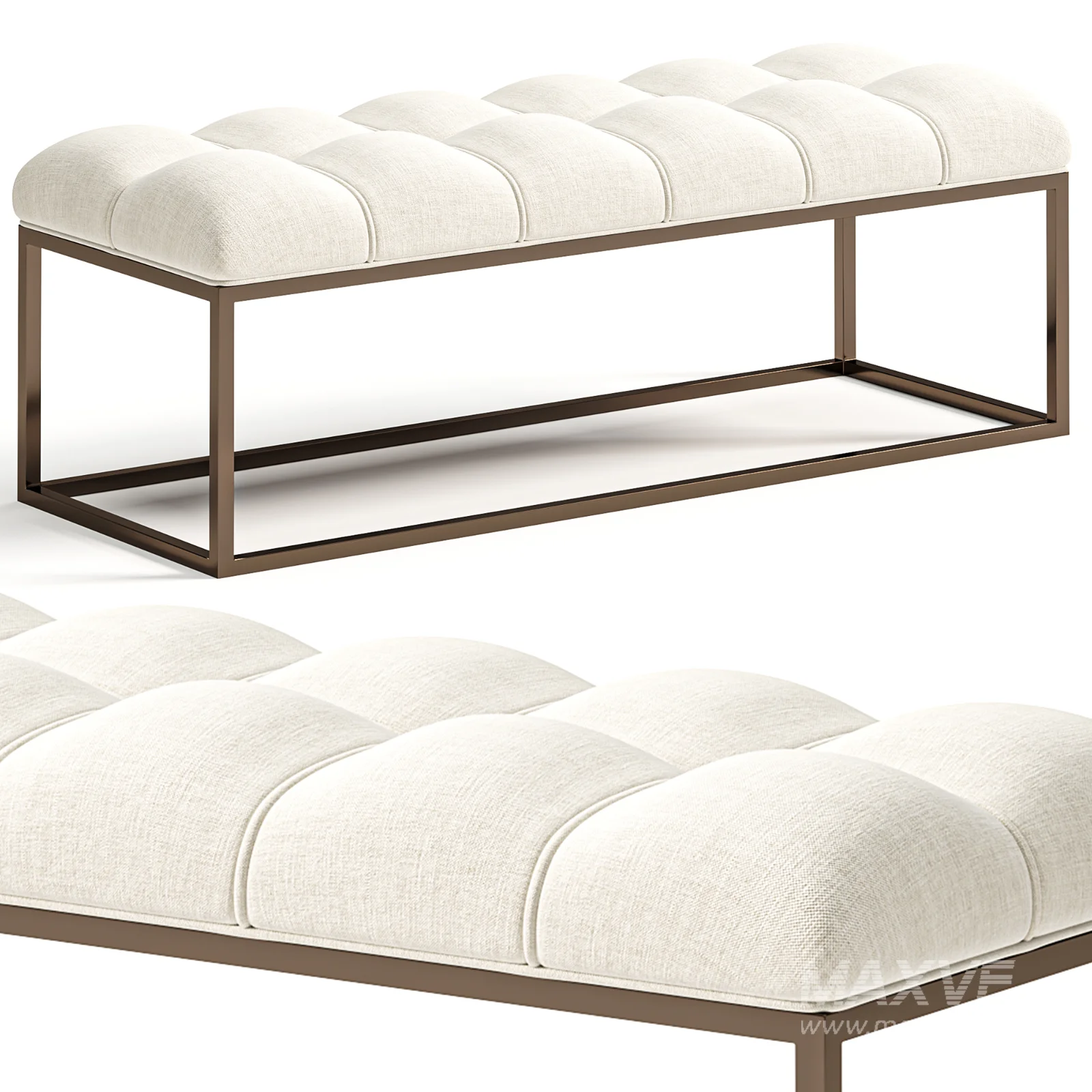 Edie Biscuit Tufted Bench In Brass