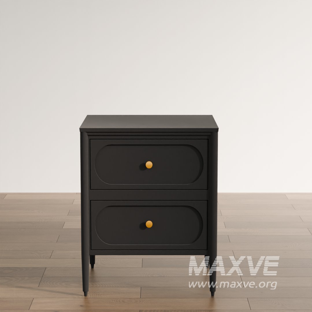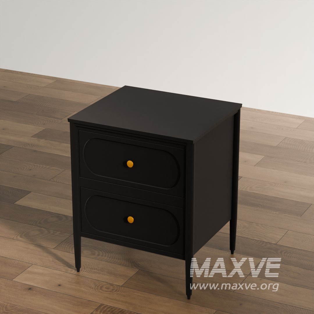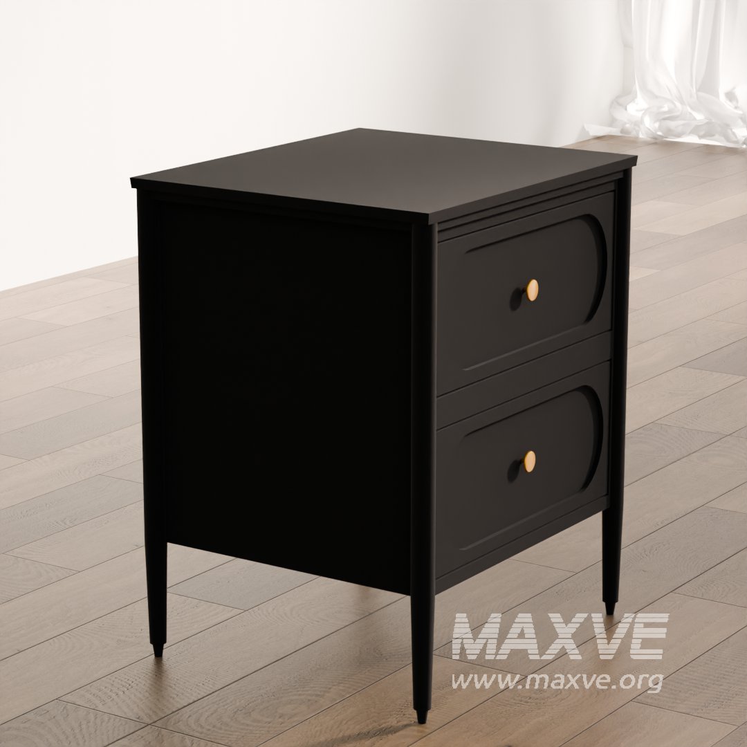 This high-quality 3D model features an elegant black nightstand with two drawers and stylish round gold knobs, designed for modern and luxurious interior scenes. With clean geometry and PBR-ready textures, it's perfect for architectural visualizations, game design, or product renders.