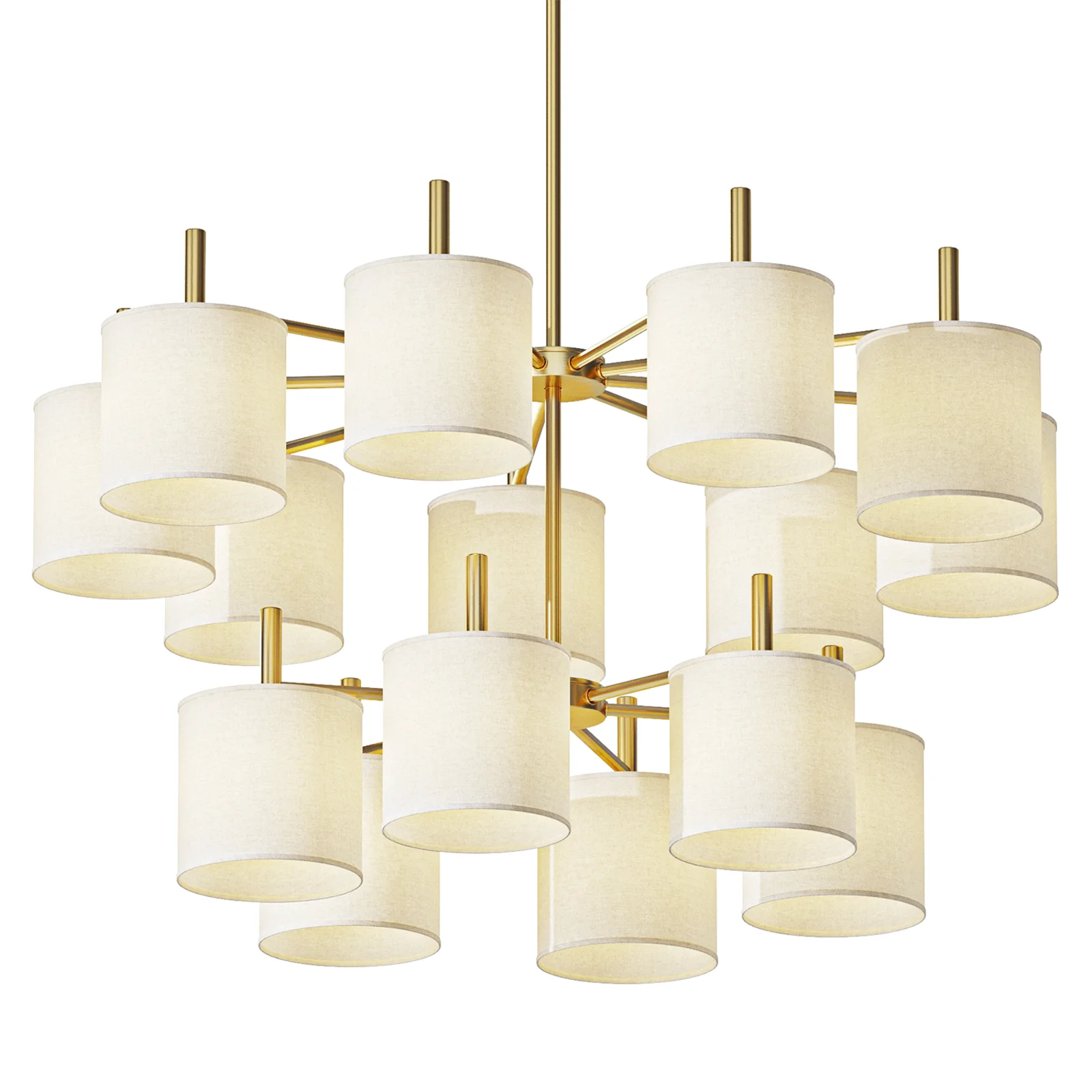Name: Ellis Two Tier Chandelier Antique Brass Linen Shades