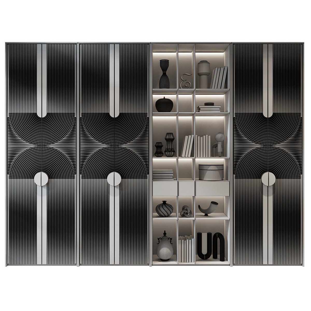 The furniture composition consists of separate grouped modules for easy editing.