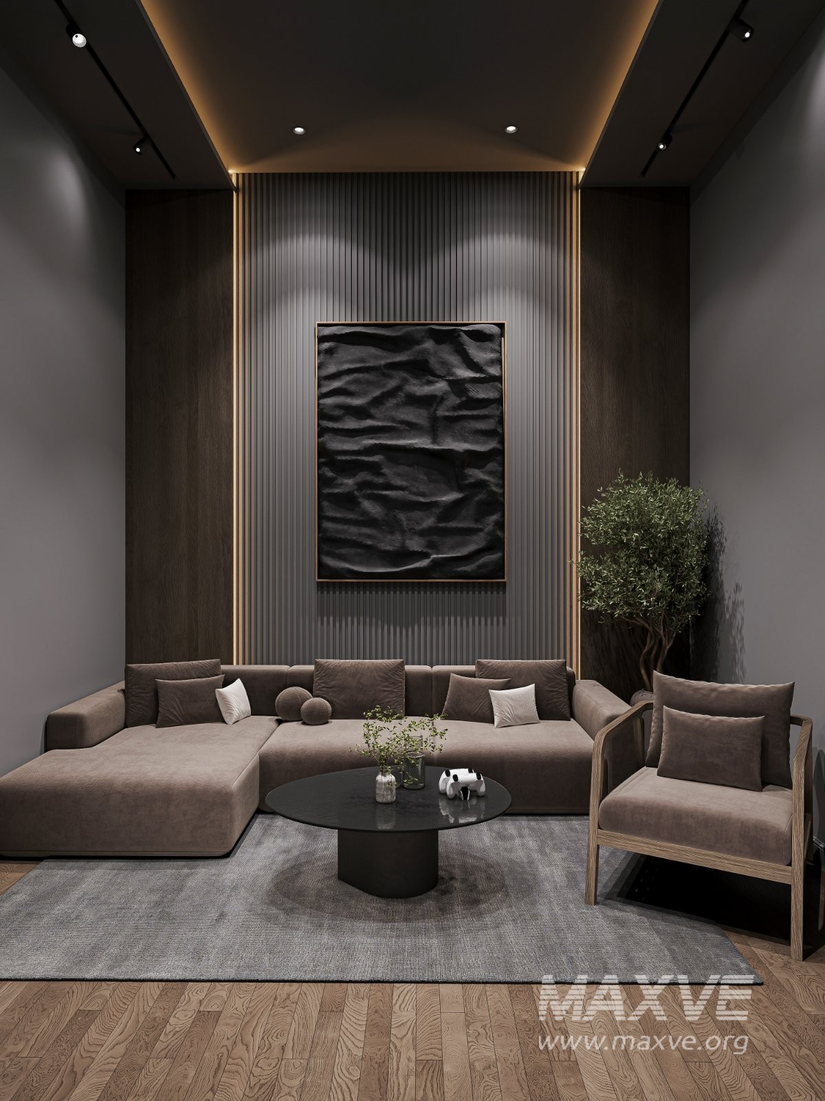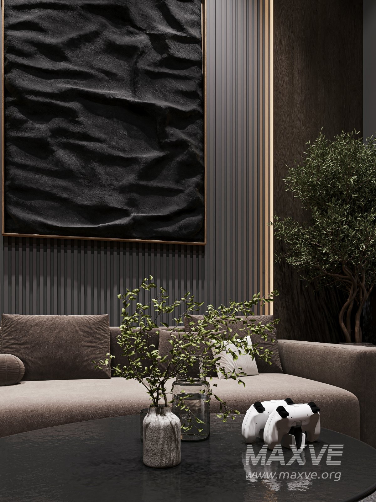 This interior is specifically designed for PlayStation and console gaming. Dark color tones, soft furniture, and concealed LED lighting create full immersion and a comfortable atmosphere during gameplay.