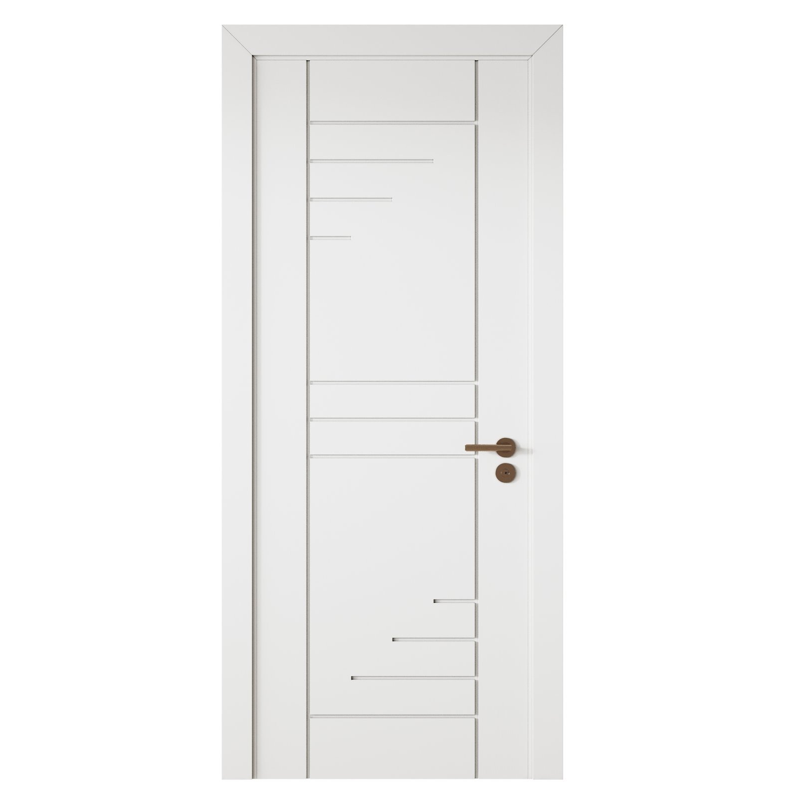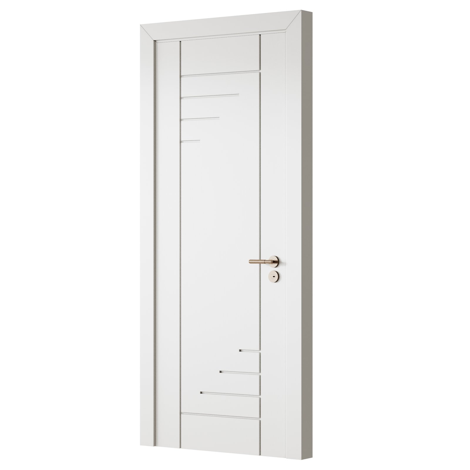 Description: A sleek interior door model designed with modern proportions and clean detailing. This door is well-suited for contemporary residential and office interiors, offering a balance of simplicity and functionality. Its realistic geometry and materials make it perfect for high-quality architectural visualizations.