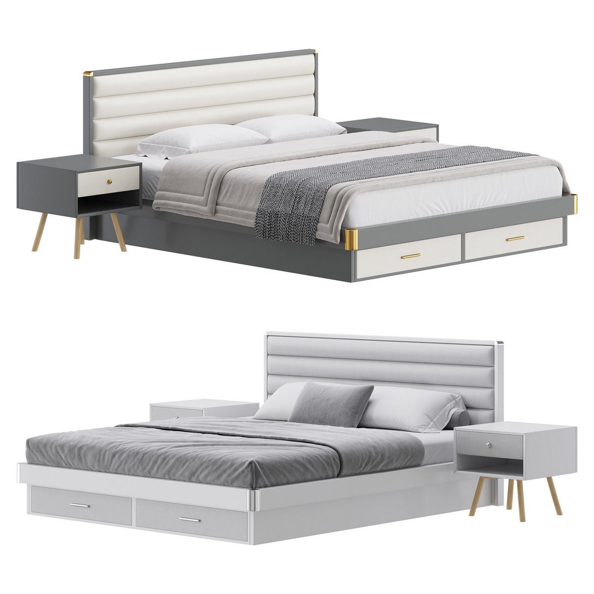 Grey Rectangular Headboard Standard Bed